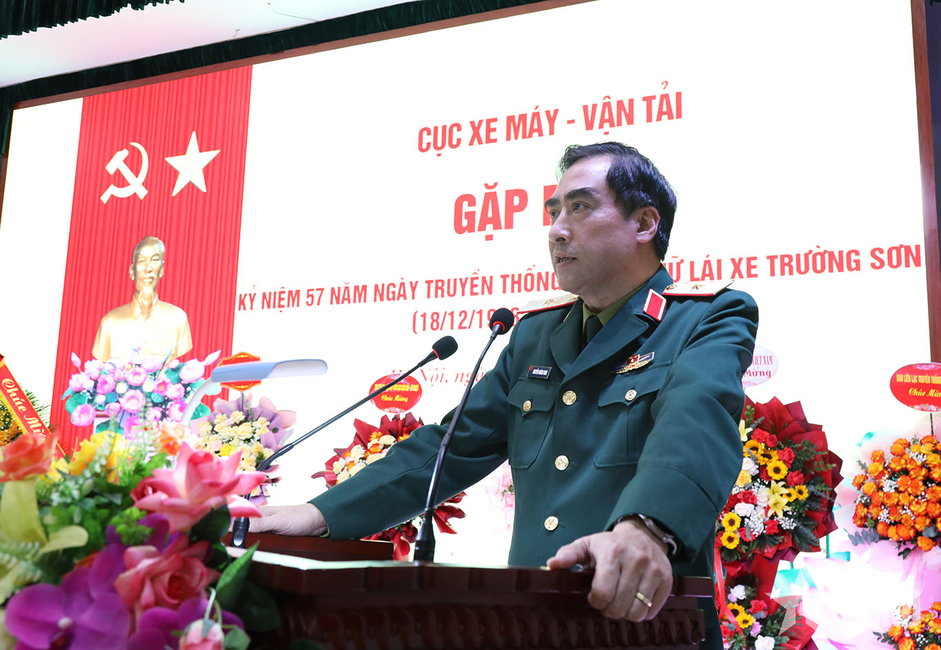 Phát biểu tại buổi gặp mặt, thay mặt Ban Thường vụ Đảng ủy, chỉ huy Cục Xe máy - Vận tải, Thiếu tướng Nguyễn Hoàng Nam gửi đến các đồng chí nữ lái xe Trường Sơn lời thăm hỏi ân cần và lời tri ân sâu sắc nhất, thế hệ cán bộ, chiến sĩ Tổng cục Hậu cần - Kỹ thuật nói chung, Cục Xe máy - Vận tải nói riêng hôm nay vô cùng biết ơn và tự hào được tiếp bước các thế hệ đi trước. Thiếu tướng Nguyễn Hoàng Nam nhấn mạnh, với trách nhiệm và tình cảm trân trọng, lãnh đạo, chỉ huy cùng toàn thể cán bộ, nhân viên, chiến sĩ trong Cục sẽ tiếp tục nâng cao năng lực lãnh đạo, sức chiến đấu, phát huy những giá trị truyền thống cao đẹp, đoàn kết một lòng, đồng cam cộng khổ, không ngừng xây dựng đơn vị chính quy, hiện đại, đáp ứng kịp thời yêu cầu, nhiệm vụ của cách mạng trong thời kỳ mới.