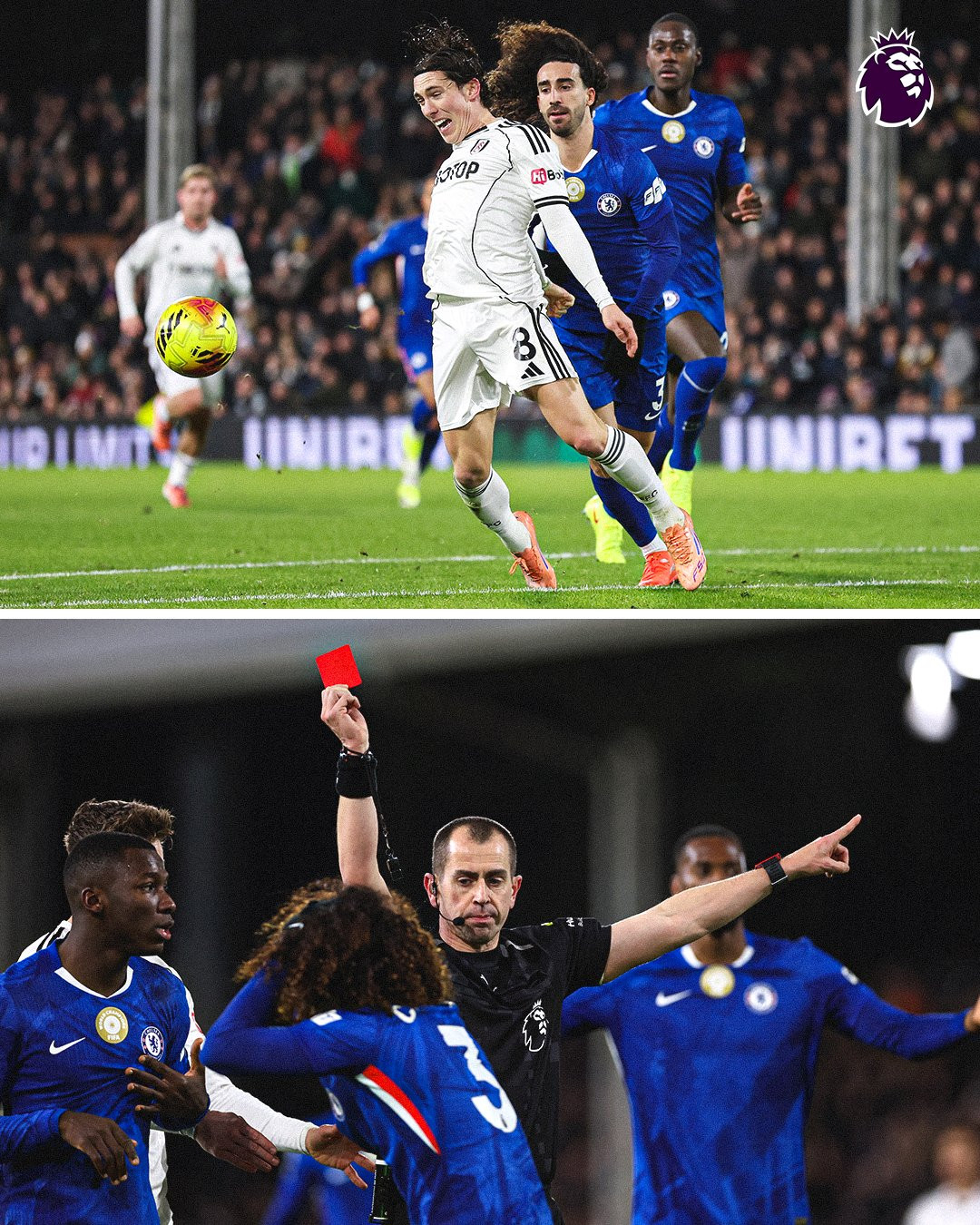 Phút 22, Marc Cucurella phạm lỗi với Wilson trong tình huống dẫn đến bàn thắng nên trọng tài đã truất quyền thi đấu hậu vệ người Tây Ban Nha