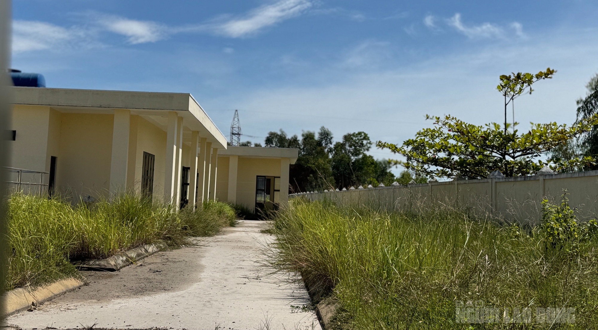 Gần cổng ra vào có một khối nhà, dự kiến công năng là trạm xử lý nước thải của CCN, hiện cửa đóng then cài, cỏ mọc um tùm bên trong