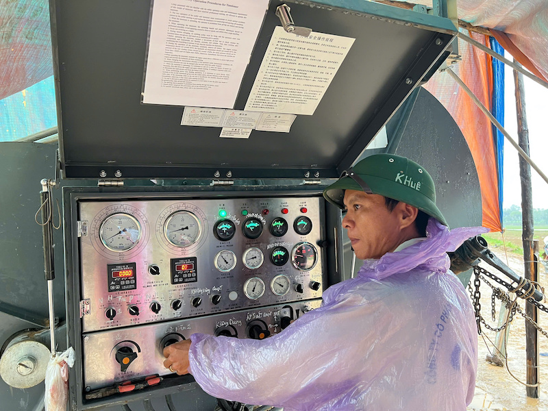 Thời gian thi công vượt sông của khoảng néo này được nhà thầu bố trí trong 5 ngày (từ 22 đến 27/10/2025). Dù có ảnh hưởng bởi thời tiết xấu khiến phải tạm dừng một ngày nhưng nhà thầu cũng đã tăng người lên và cam kết hoàn thành trước ngày 27/10, dù chủ đầu tư có cho thời hạn đến ngày 31/10.