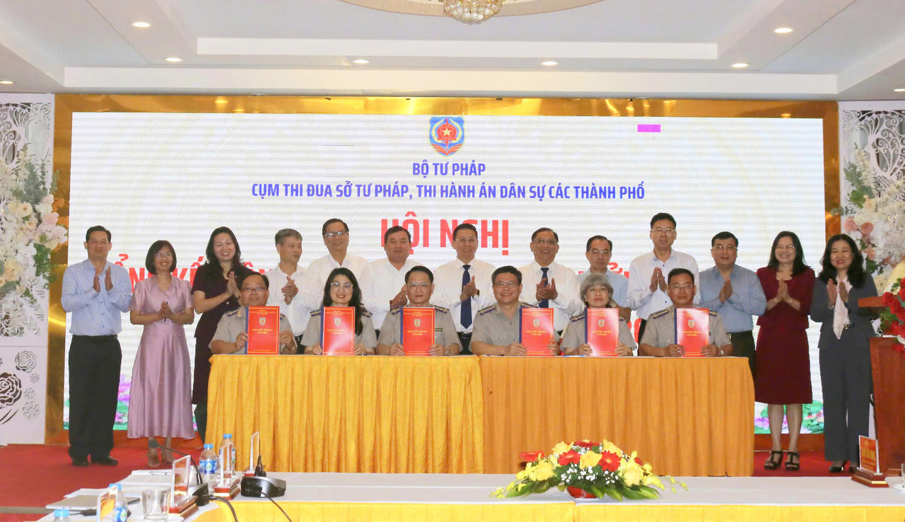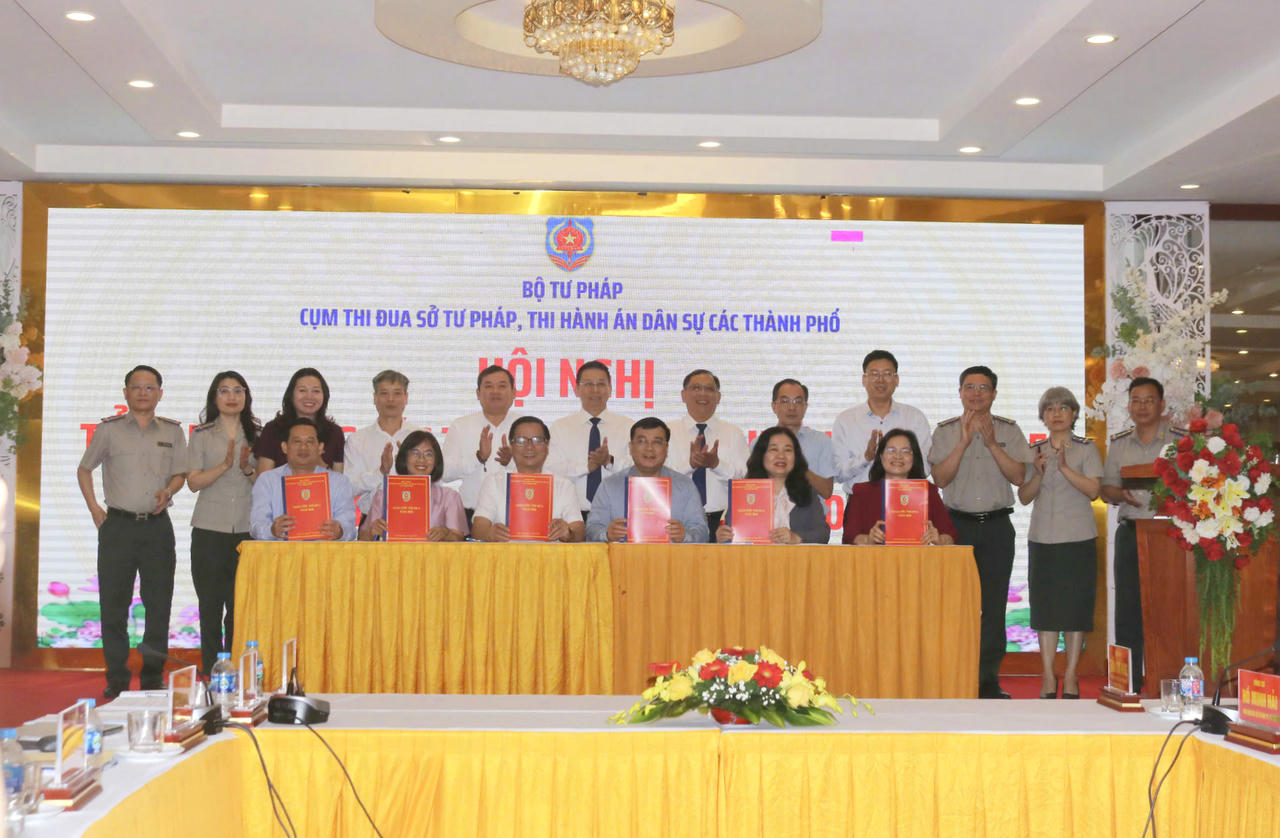 Lãnh đạo Sở Tư pháp và THADS 6 thành phố thể hiện sự đoàn kết, quyết tâm lập thành tích trong các phong trào thi đua