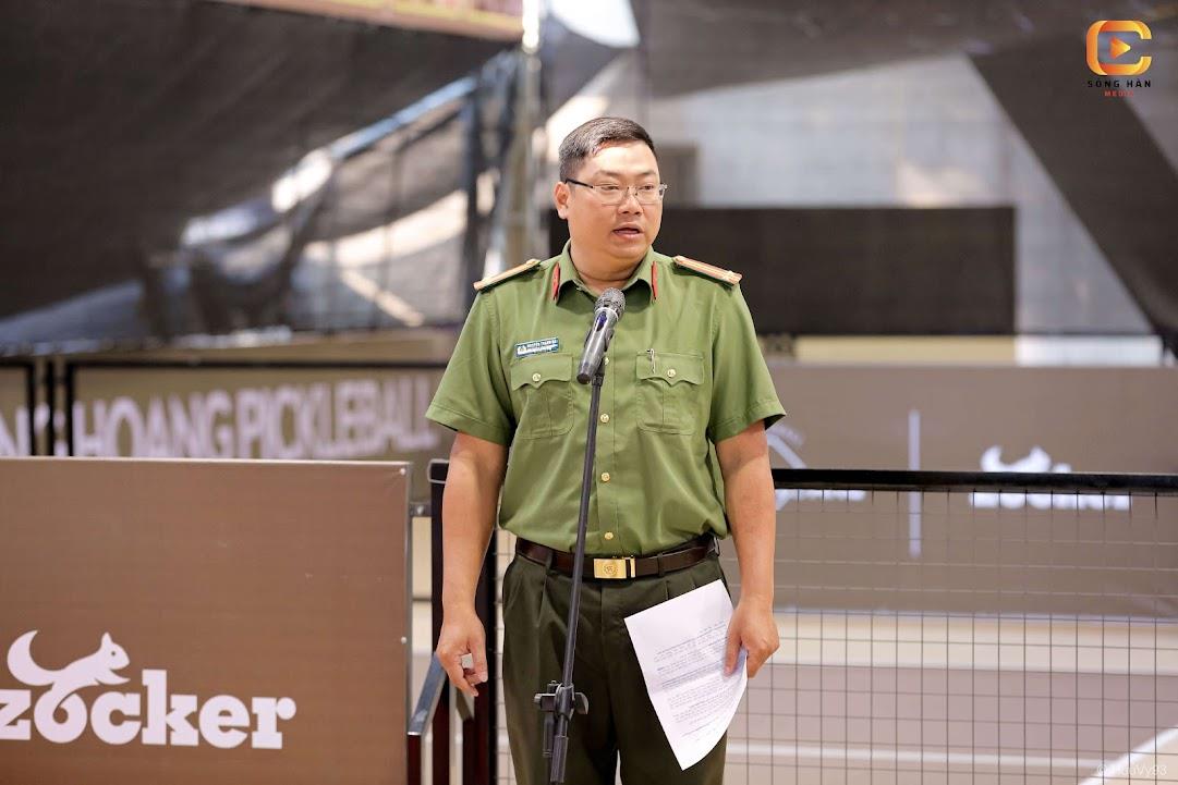 Trung tá Nguyễn Thanh Hải, Phó Trưởng Công an phường Thanh Khê (đại diện Cụm thi đua số 1) phát biểu khai mạc giải.