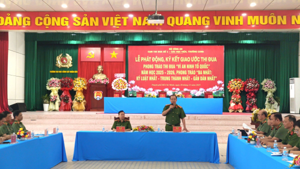 Tại buổi lễ, Đại tá Nguyễn Thành Phúc, Phó Hiệu trưởng Trường Đại học CSND, đơn vị Cụm trưởng Cụm thi đua số 1, cho biết: Nhằm tiếp tục phát huy những thành tích đã đạt được trong năm học 2024 - 2025 của Cụm thi đua số 1; đồng thời tích cực hưởng ứng phong trào thi đua “Vì an ninh Tổ quốc” do Bộ Công an phát động và triển khai thực hiện Chương trình nhiệm vụ công tác trọng tâm năm học 2025 - 2026 trong các học viện, trường CAND của Bộ Công an. Cụm thi đua số 1 - các học viện, trường CAND tổ chức Lễ phát động, ký kết giao ước thi đua trong phong trào thi đua “Vì an ninh Tổ quốc” năm học 2025 - 2026.