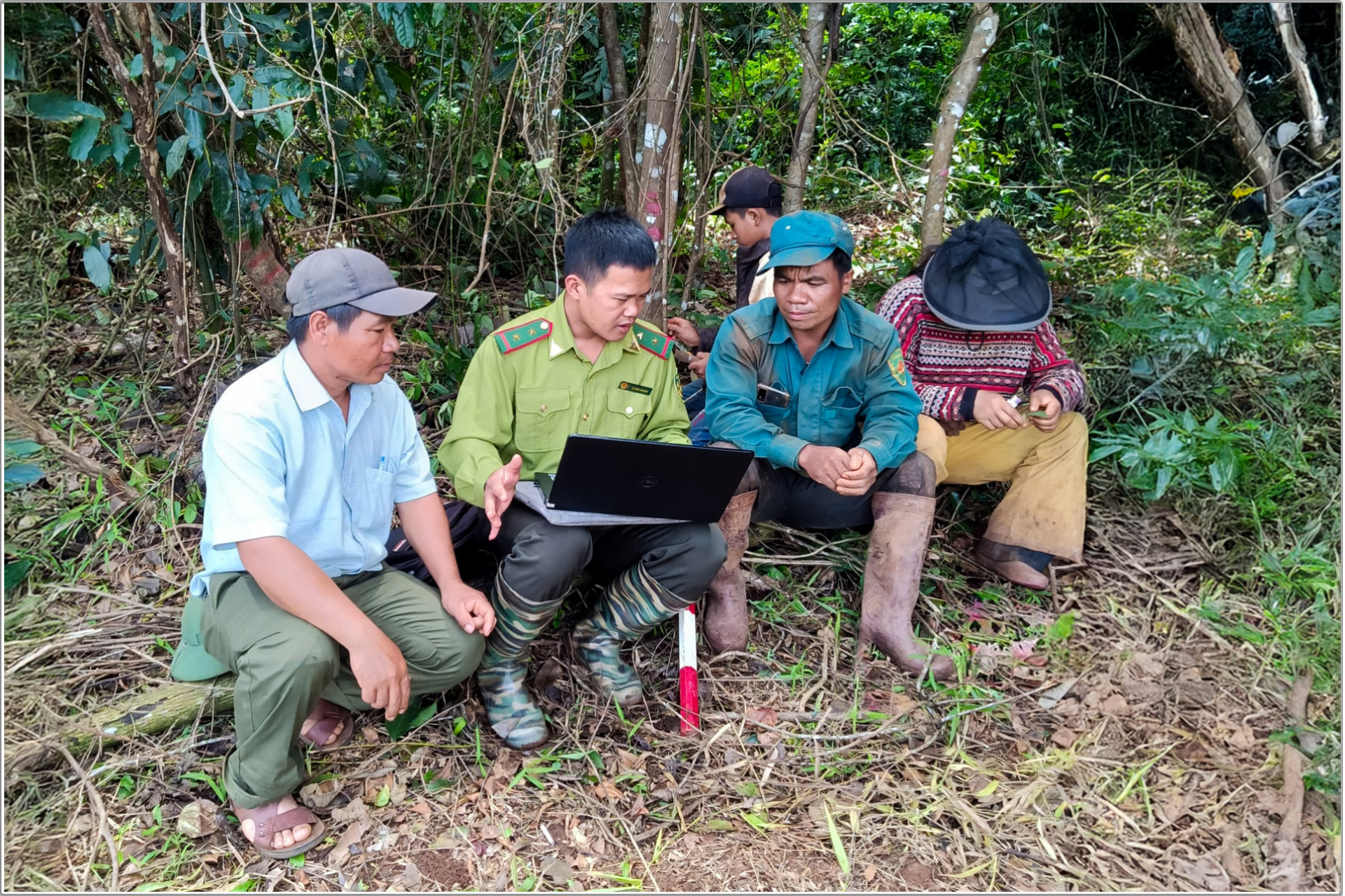 Cán bộ kiểm lâm chia sẻ kinh nghiệm về công tác quản lý, bảo vệ rừng với các thành viên Ban Quản lý rừng cộng đồng
