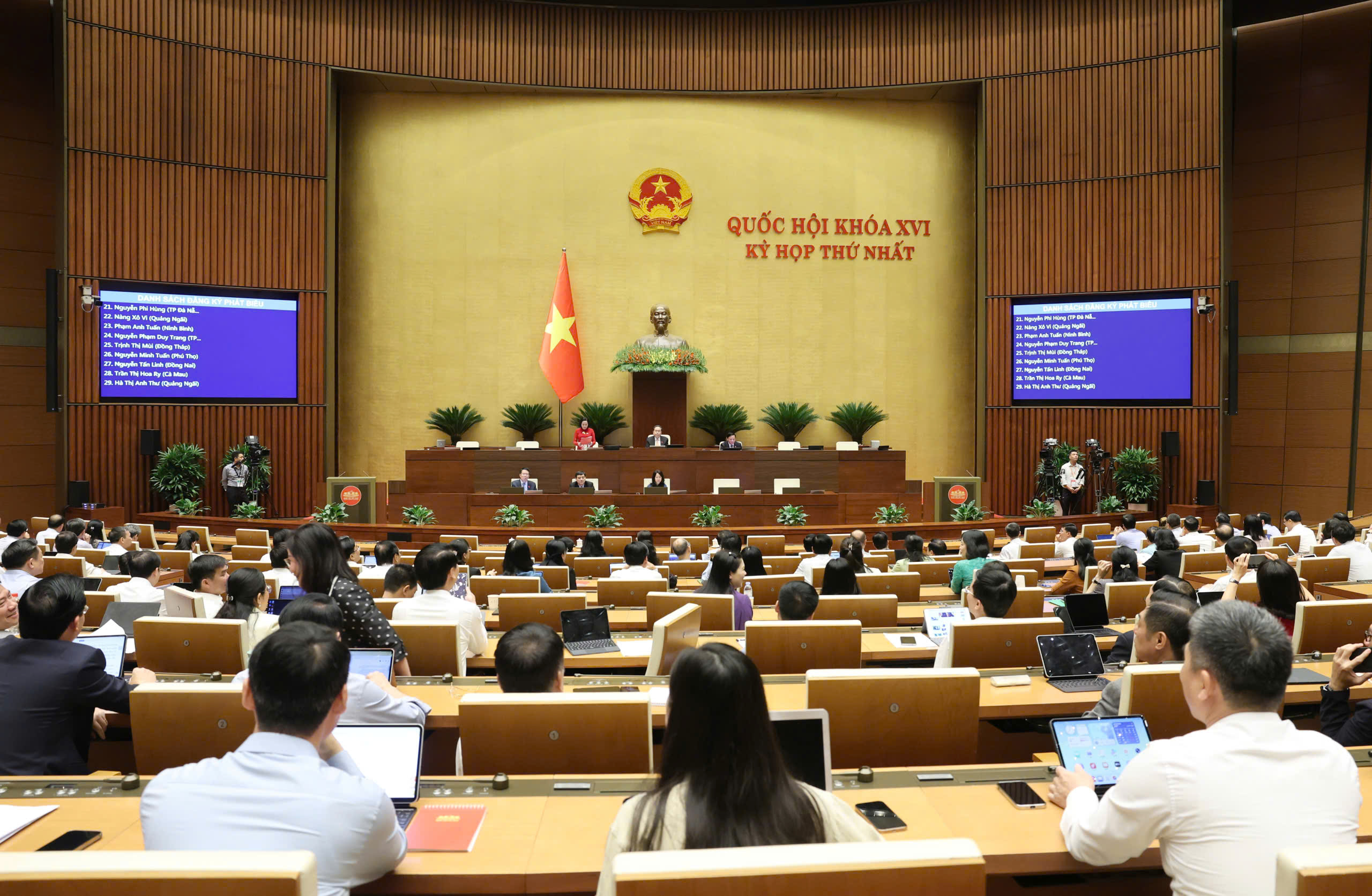 Các ĐB Quốc hội tại hội trường sáng 22-4. Ảnh: QUANG PHÚC