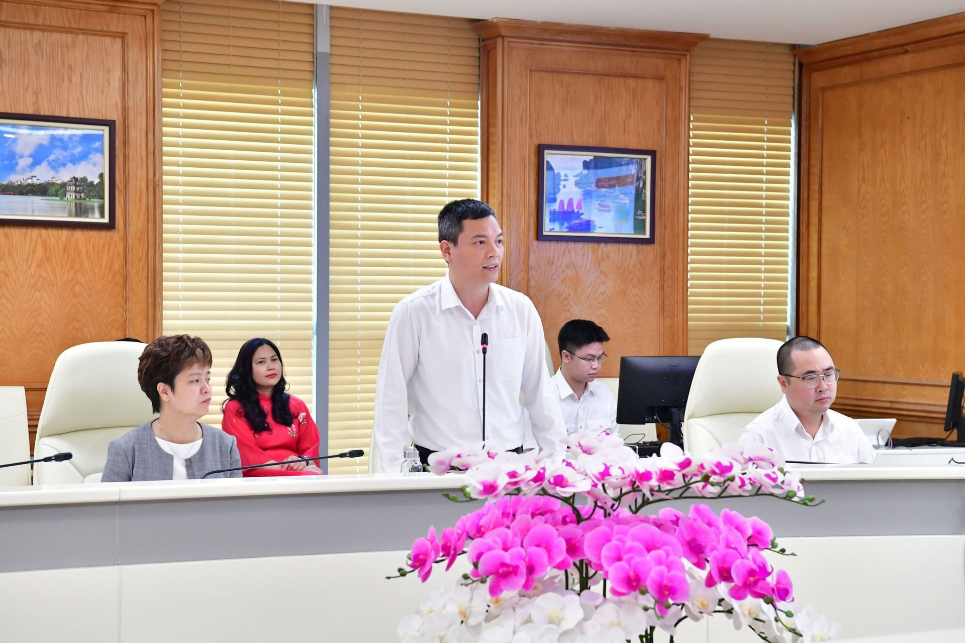 Cục trưởng Cục Công nghệ thông tin Phạm Huy Thông báo cáo về công tác xây dựng phần mềm mới. Ảnh: TL