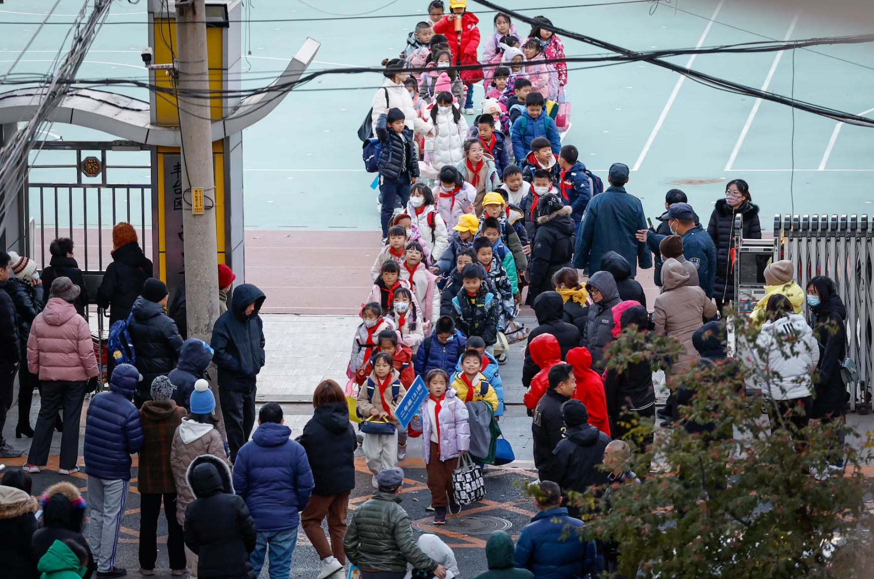 Hình ảnh học sinh tiểu học ra về ở Bắc Kinh. Ảnh: EPA-EFE