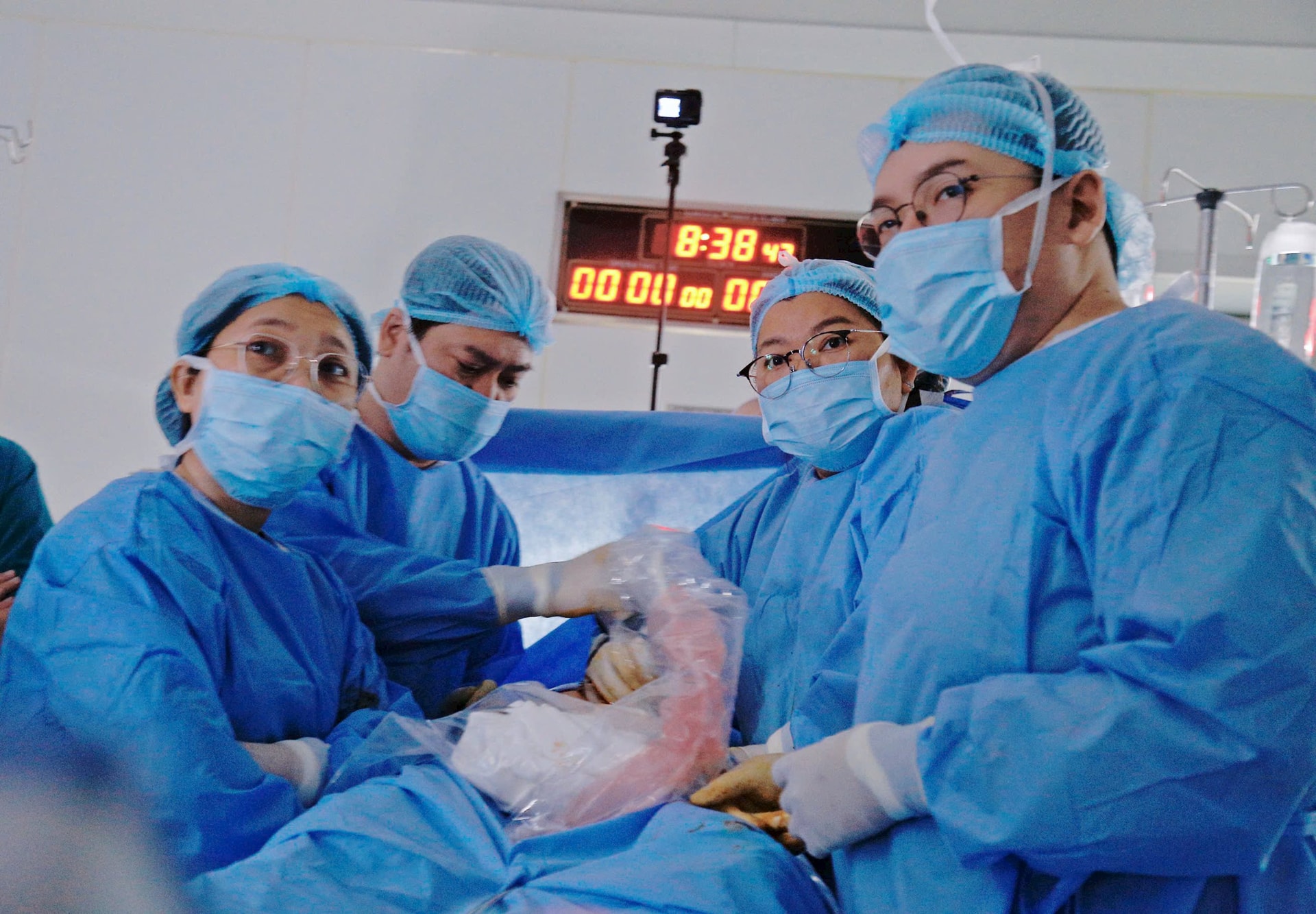 Tổng lượng máu mất ước khoảng 6 ml. Ca can thiệp kết thúc lúc 9h25' cùng ngày, thai phụ được chuyển về phòng hồi sức tiếp tục theo dõi.