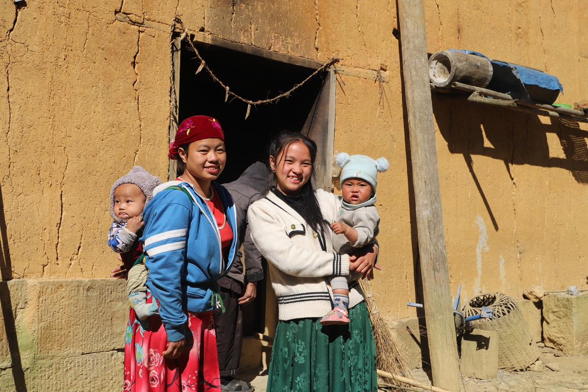 Giàng Thị Chõ và con ở trong ngôi nhà được mượn để quay phim "Tết ở làng Địa ngục"