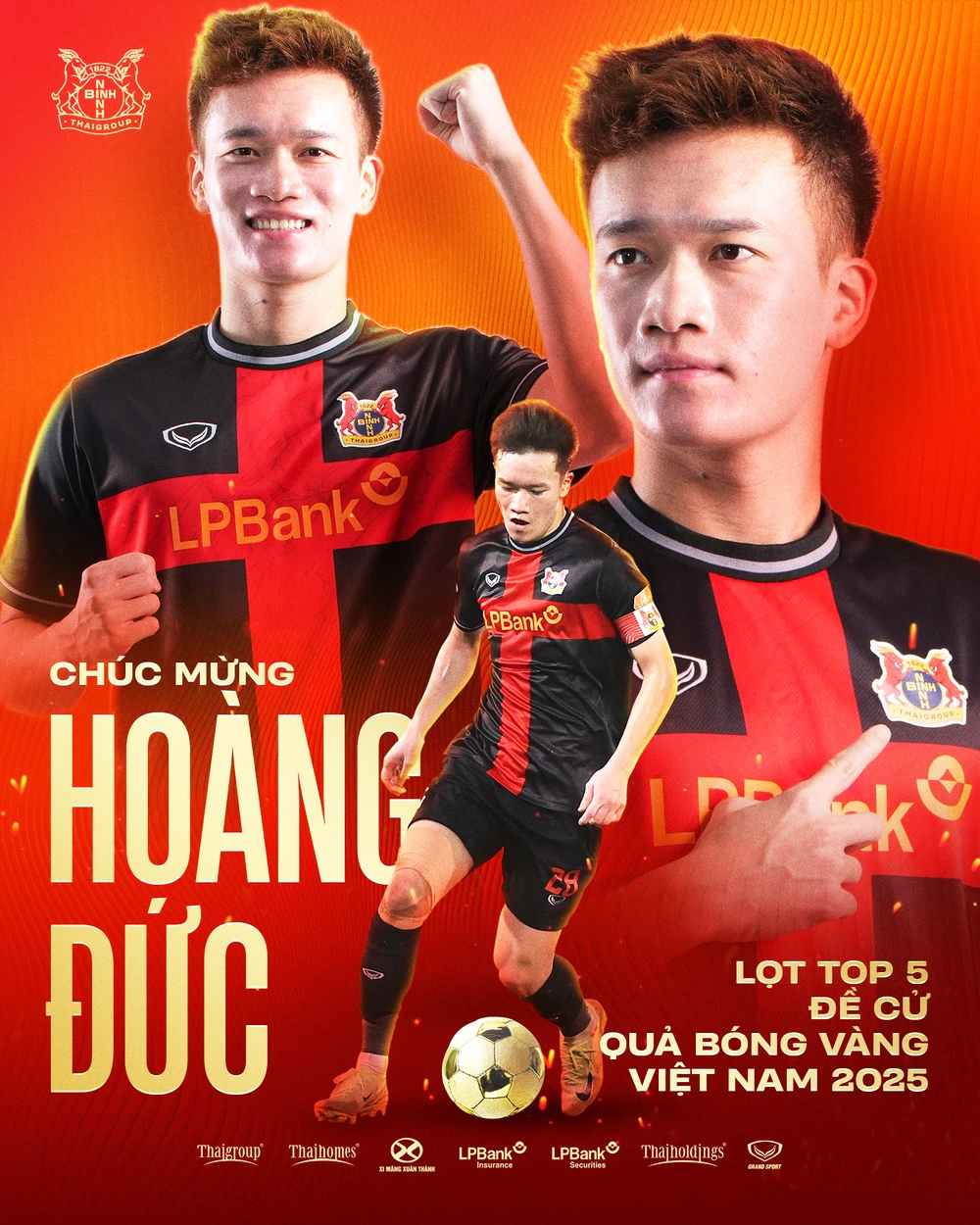 Hoàng Đức là ứng cử viên nặng ký cho danh hiệu Quả bóng vàng Việt Nam 2025.