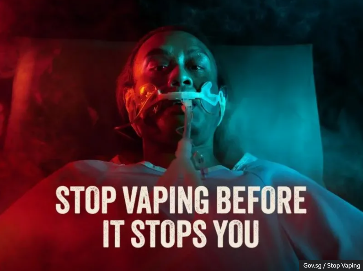 Các áp phích chống thuốc lá điện tử được truyền thông khắp các không gian công cộng và mạng xã hội ở Singapore