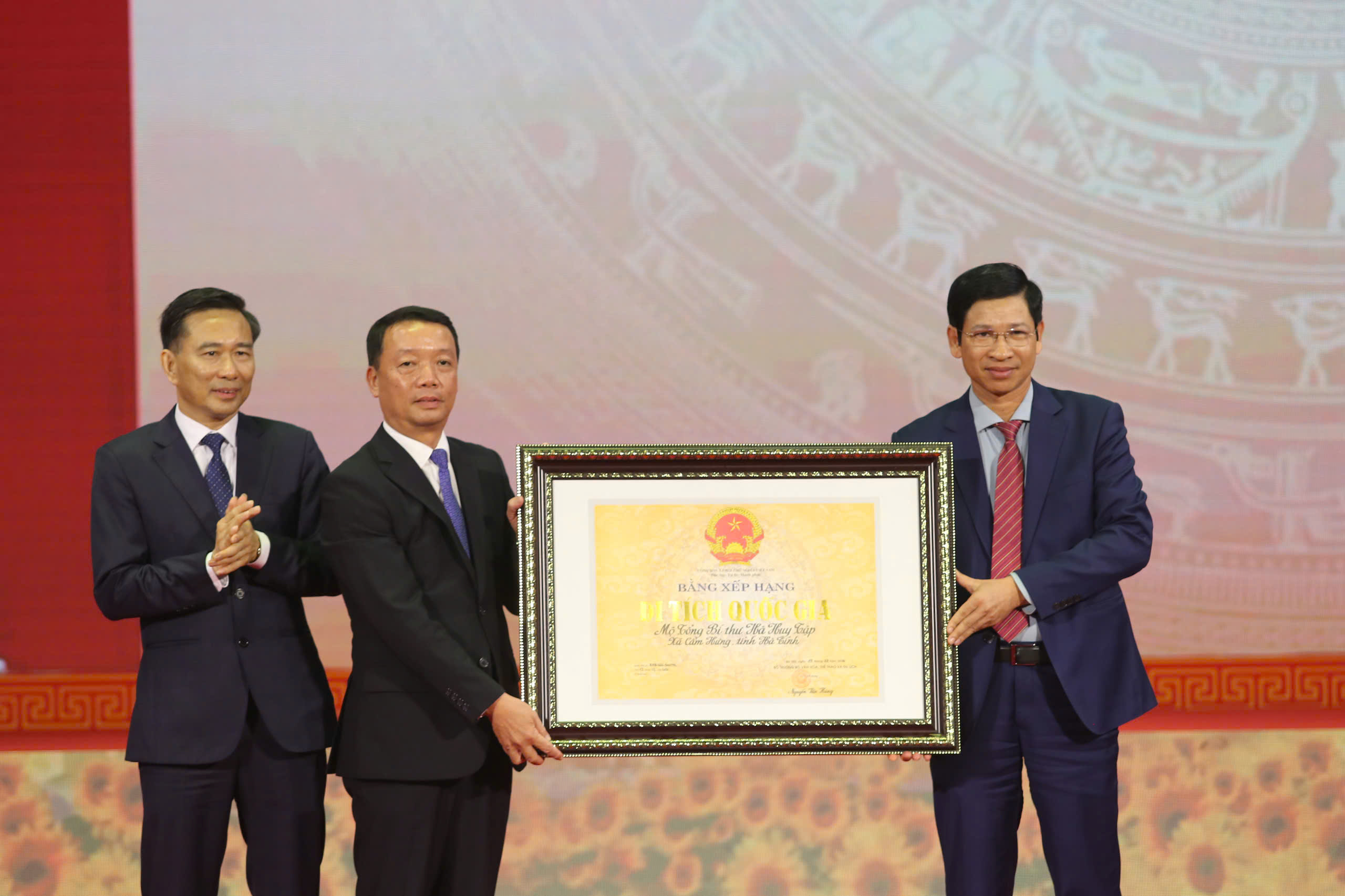 Nhân dịp này, lãnh đạo Bộ VH&TT&DL đã trao Bằng công nhận Khu mộ Tổng Bí thư Hà Huy Tập là Di tích lịch sử quốc gia cho lãnh đạo tỉnh Hà Tĩnh.