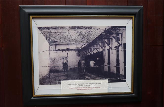 Bức ảnh xà lim, nơi giam giữ người chiến sĩ yêu nước Phạm Văn Đồng tại Côn Đảo, được trưng bày tại khu lưu niệm.