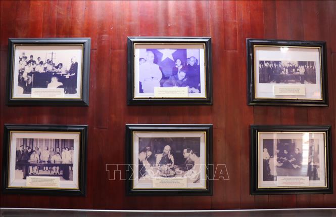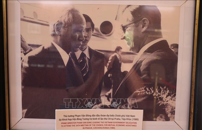 Ảnh hoạt động ngoại giao của Thủ tướng Phạm Văn Đồng được trưng bày tại khu lưu niệm.