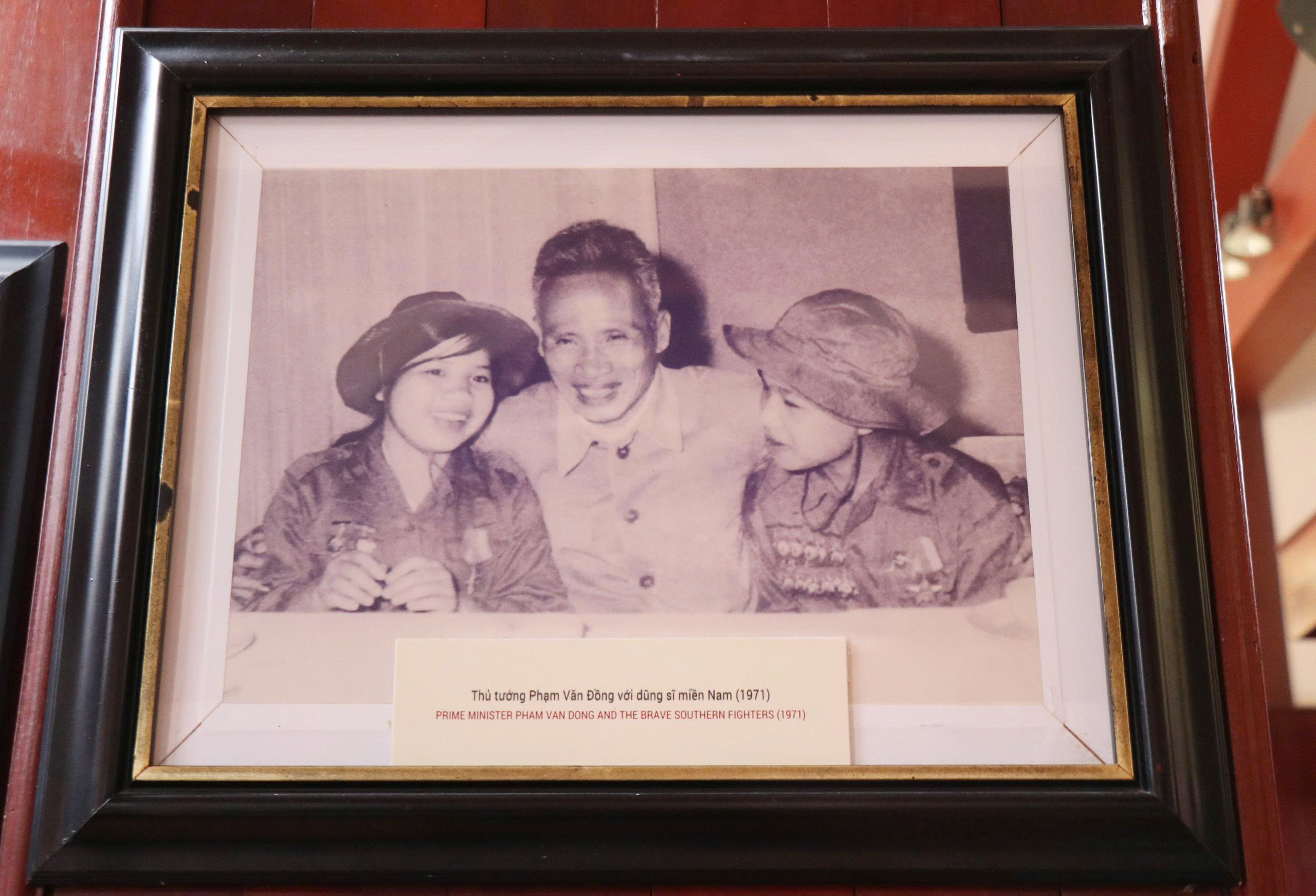 Thủ tướng Phạm Văn Đồng với dũng sĩ miền Nam (1971), ảnh được trưng bày tại Khu lưu niệm