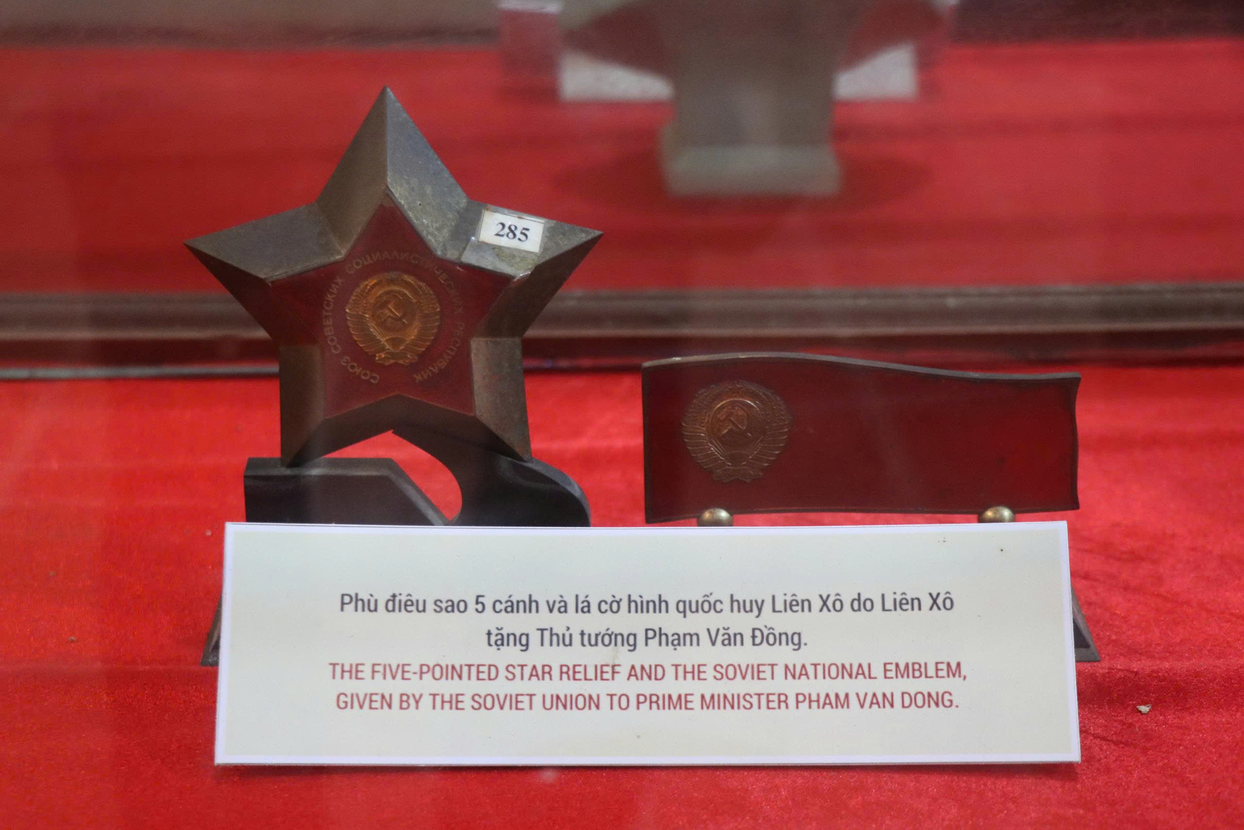 Phù điêu sao 5 cánh và lá cờ hình quốc huy Liên Xô do Liên Xô tặng Thủ tướng Phạm Văn Đồng