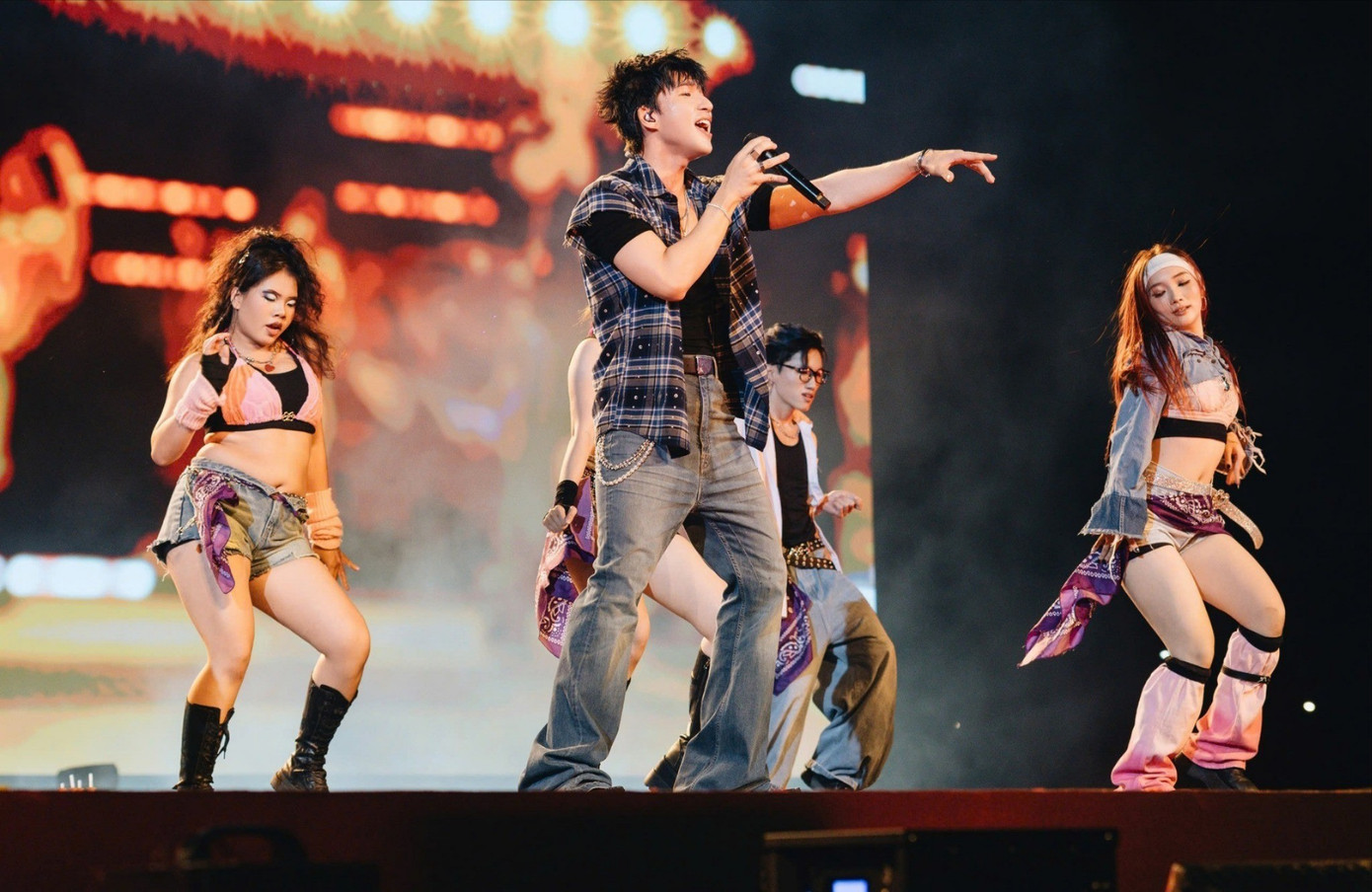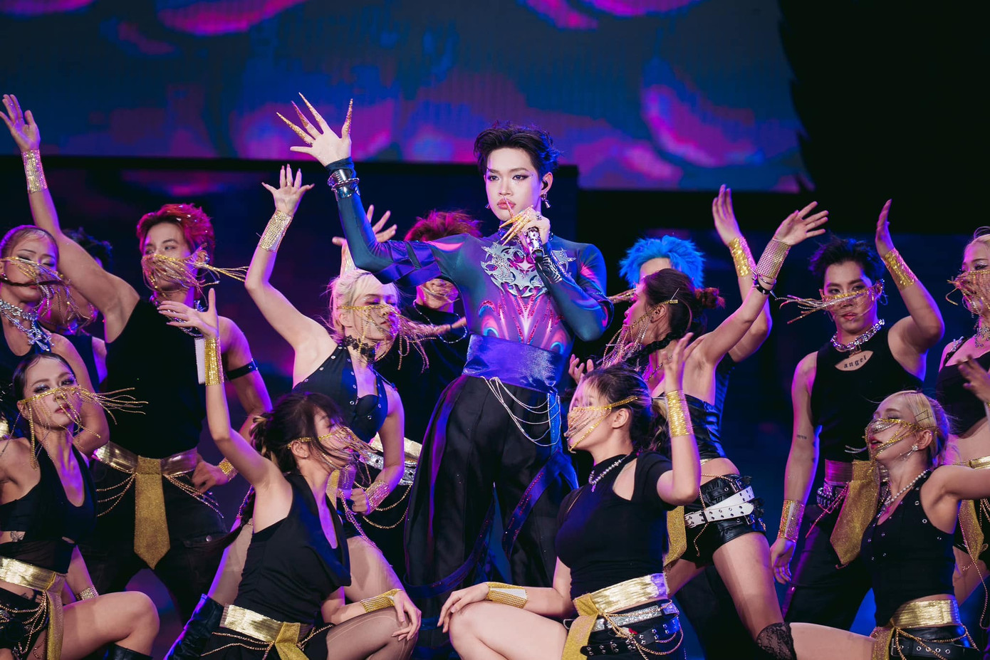 Khép lại đêm nhạc là set diễn được mong chờ nhất của Hieuthuhai. Nam rapper xuất hiện rực sáng với visual như hoàng tử, khiến không khí bùng nổ ngay từ khoảnh khắc đầu tiên. Anh khoe khả năng vũ đạo tiến bộ vượt bậc, những chuyển động đầy năng lượng.