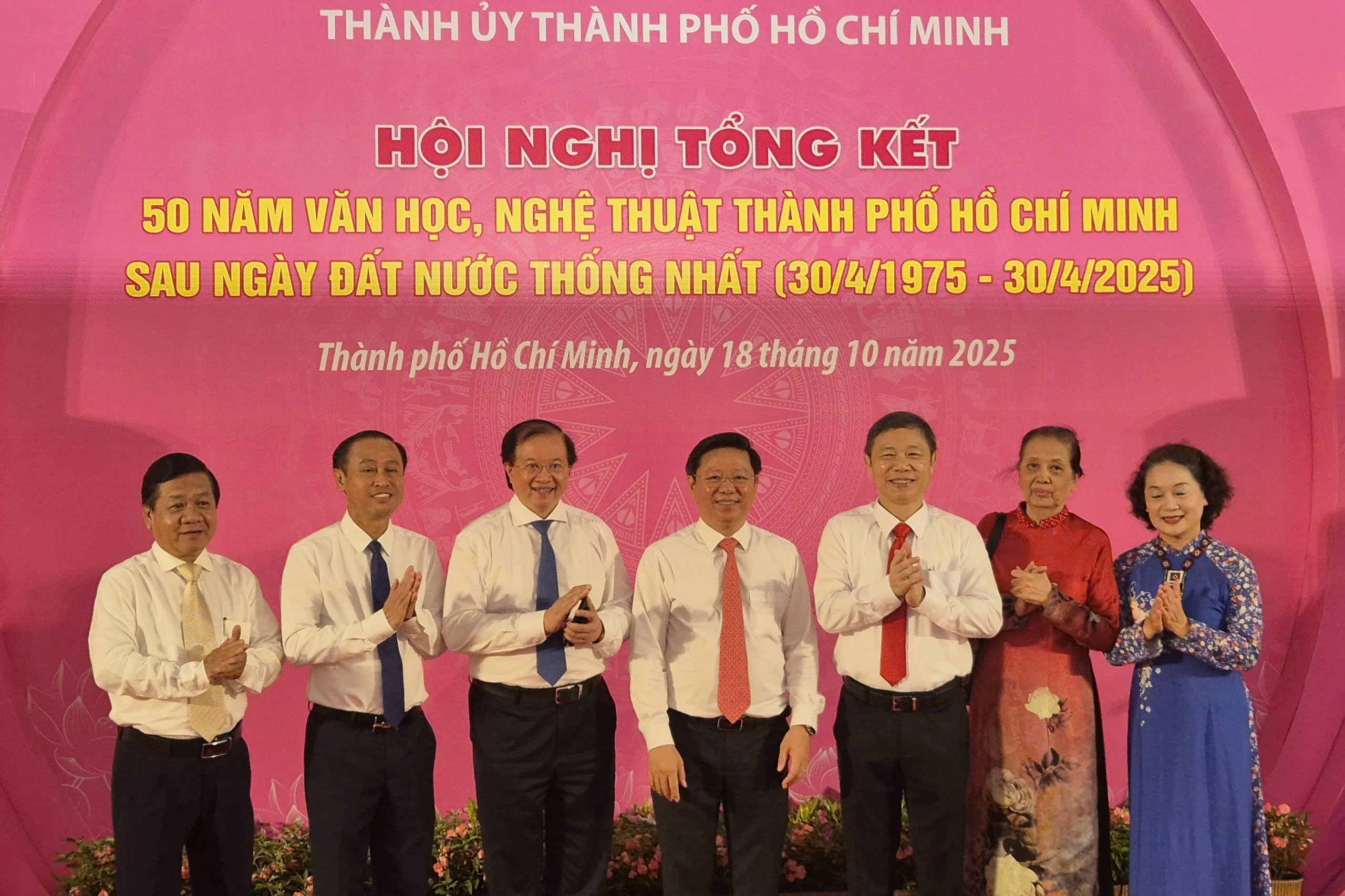 Ngày 18/10, Hội nghị tổng kết 50 năm văn học, nghệ thuật TP.HCM được Thành ủy phối hợp với Ban Tuyên giáo, Ban Dân vận, Sở Văn hóa - Thể thao, Liên hiệp các hội văn học nghệ thuật và Thành đoàn tổ chức. Sự kiện có sự tham dự của đông đảo văn nghệ sĩ, lãnh đạo các cơ quan báo chí, cùng ông Lê Quốc Phong - Phó bí thư Thường trực Thành ủy TP.HCM, ông Trần Thanh Lâm - Phó ban Tuyên giáo và Dân vận Trung ương và Thứ trưởng Bộ Văn hóa, Thể thao và Du lịch Tạ Quang Đông.
