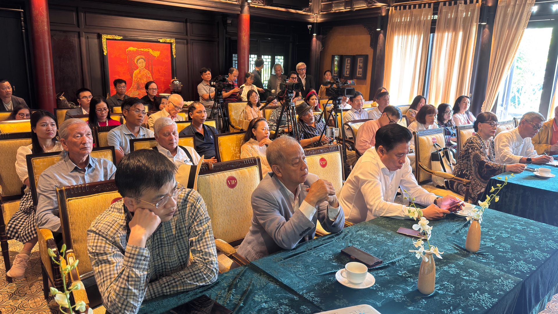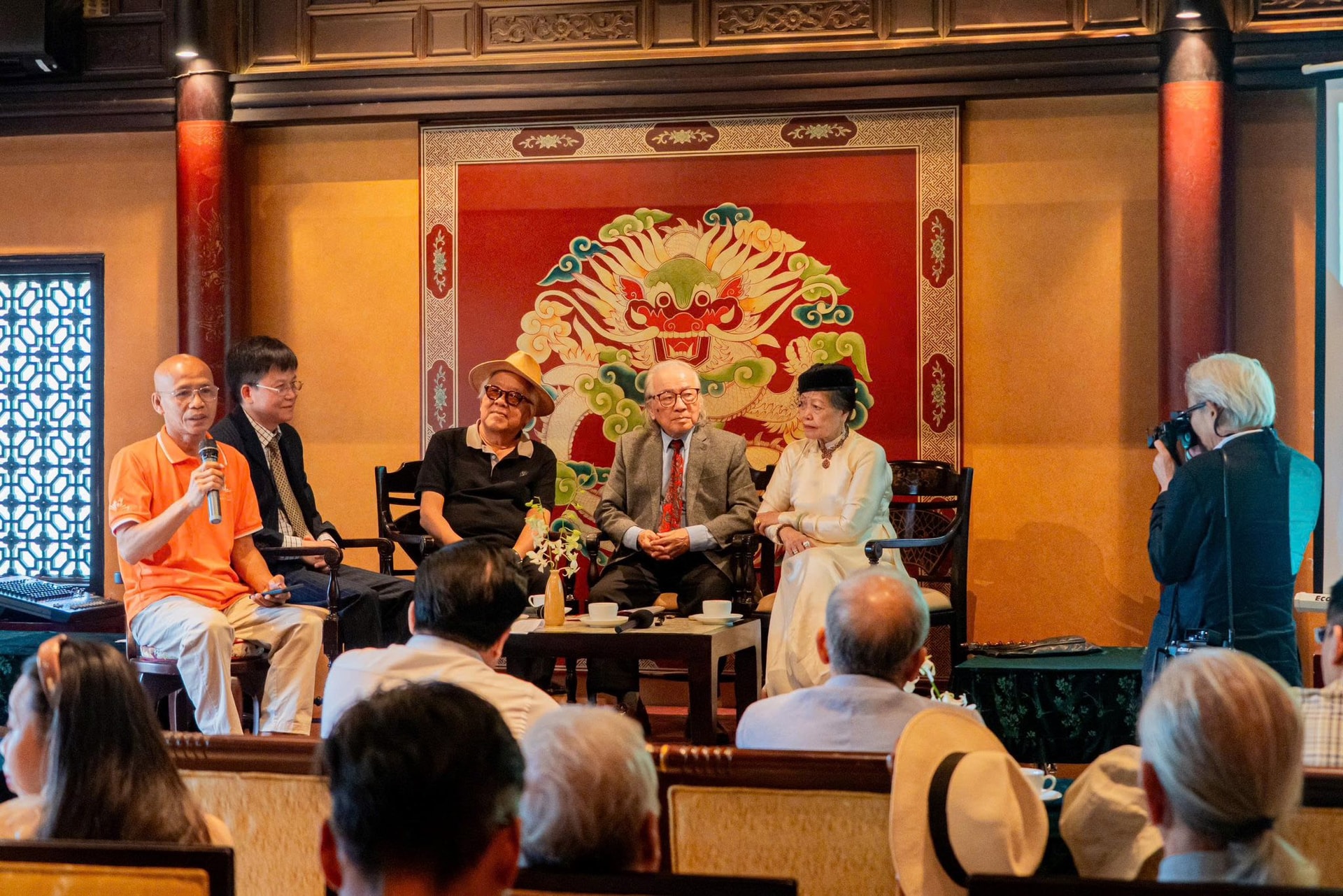 Từ sớm, không gian hội trường Phú Mộng kín người. Khán giả không chỉ ở Huế. Nhiều người yêu nhạc Trịnh từ TP.HCM và Hà Nội cũng vào dự, có người đến sớm, chọn chỗ ngồi, mở sổ ghi chép, ghi hình, theo dõi trọn vẹn các phần trao đổi.