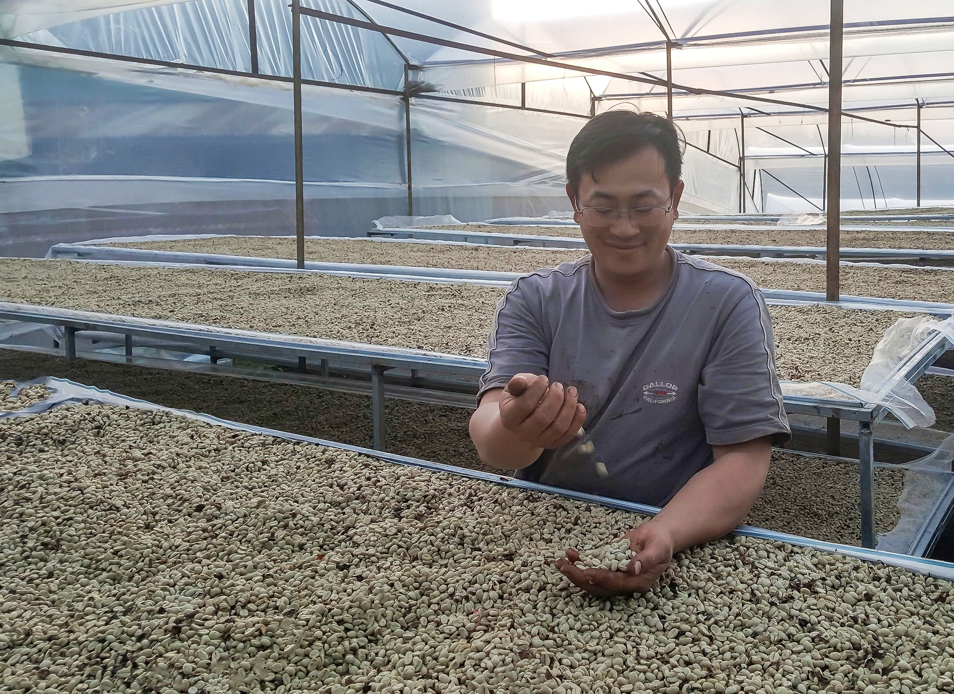 Phơi cà phê trong nhà kính