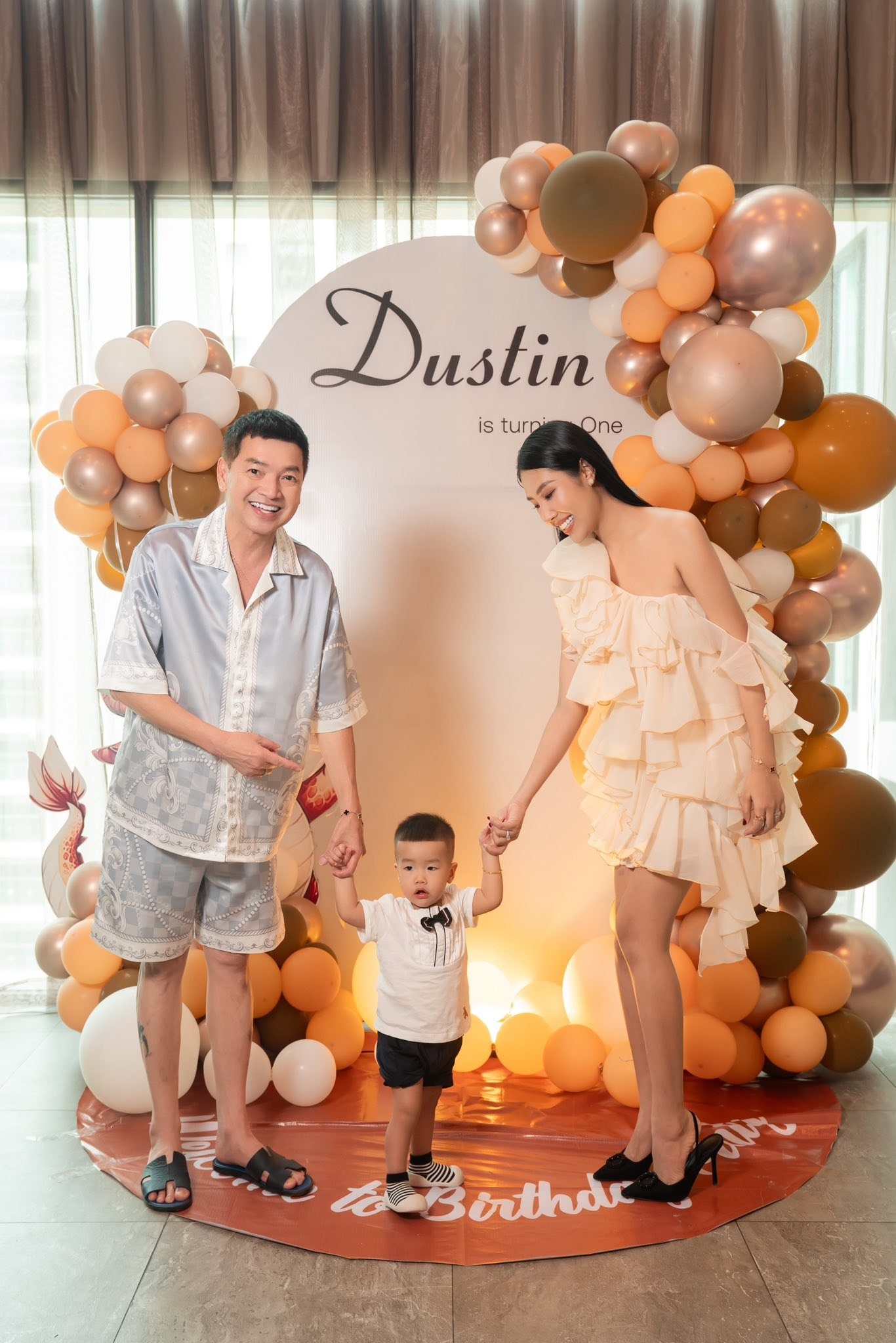Quang Minh và Khánh Chi tổ chức tiệc sinh nhật cho con trai. Ảnh: FBNV.
