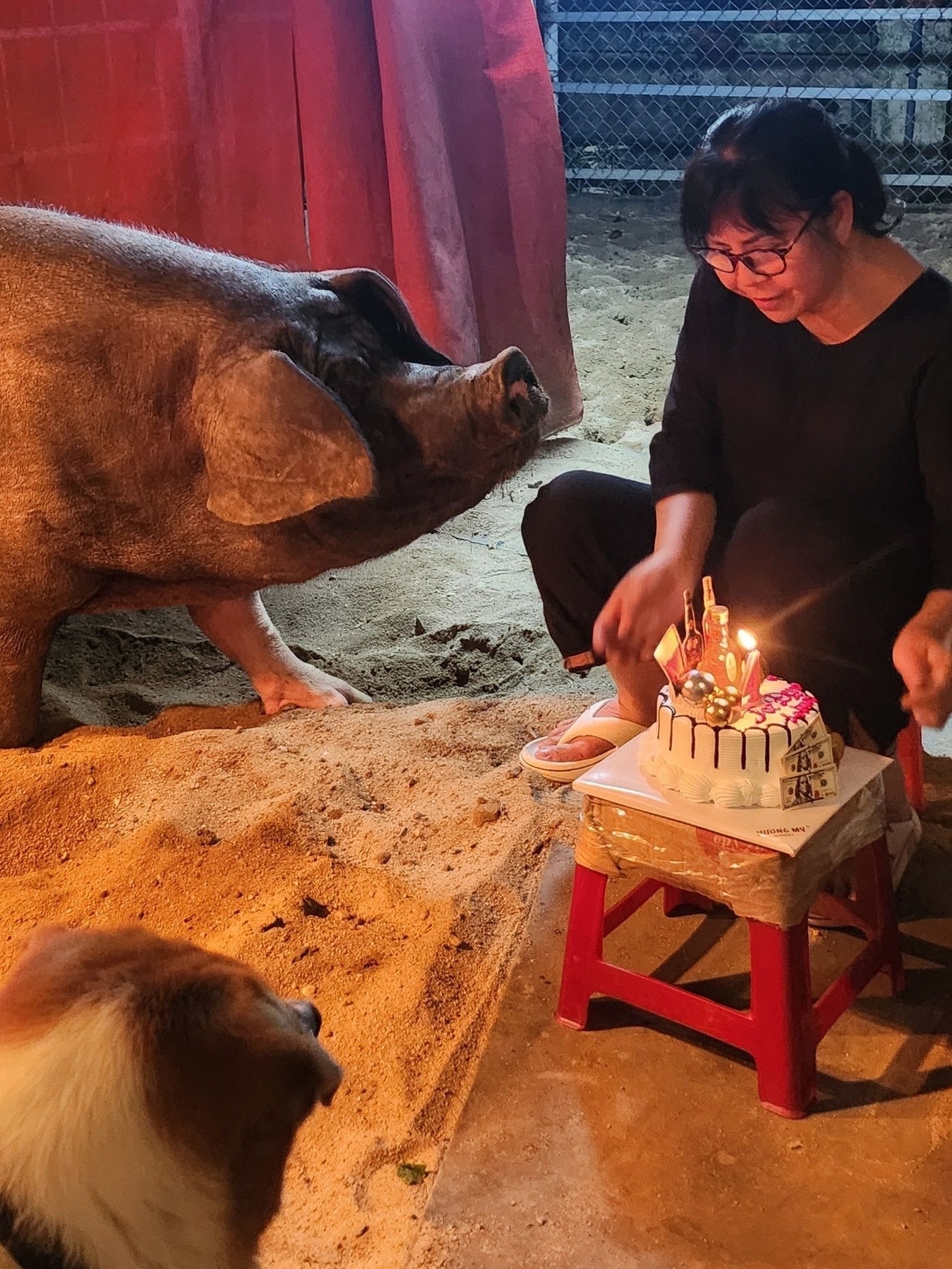 Ca sĩ Ánh Tuyết vừa chia sẻ khoảnh khắc tổ chức sinh nhật cho chú heo Joe Đen, 4 tuổi. Chú heo này được gia đình ca sĩ nuôi từ khi mới nặng hơn 1 kg. Ngoài chú heo nói trên, Ánh Tuyết còn nuôi hơn 10 thú cưng khác, phần lớn là cún.