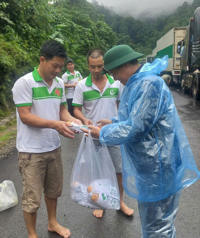 Cấp phát đồ ăn cho tài xế bị mắc kẹt trên đèo