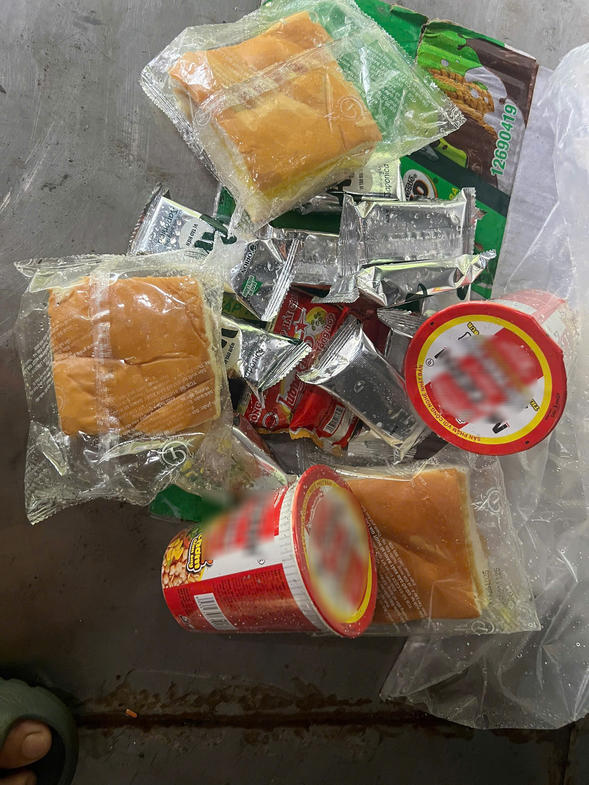 Một phần thực phẩm được đoàn cứu hộ tiếp tế cho chị Lệ sử dụng lúc bị mắc kẹt