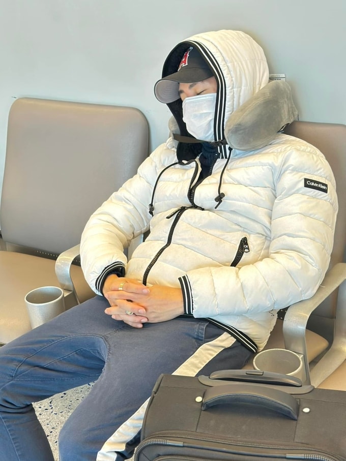 Phùng Ngọc Huy ngủ ở sân bay khi chạy show