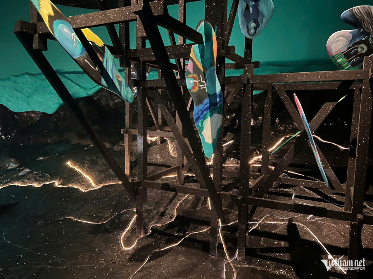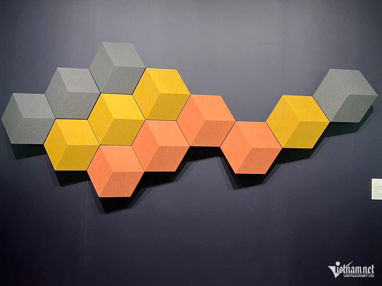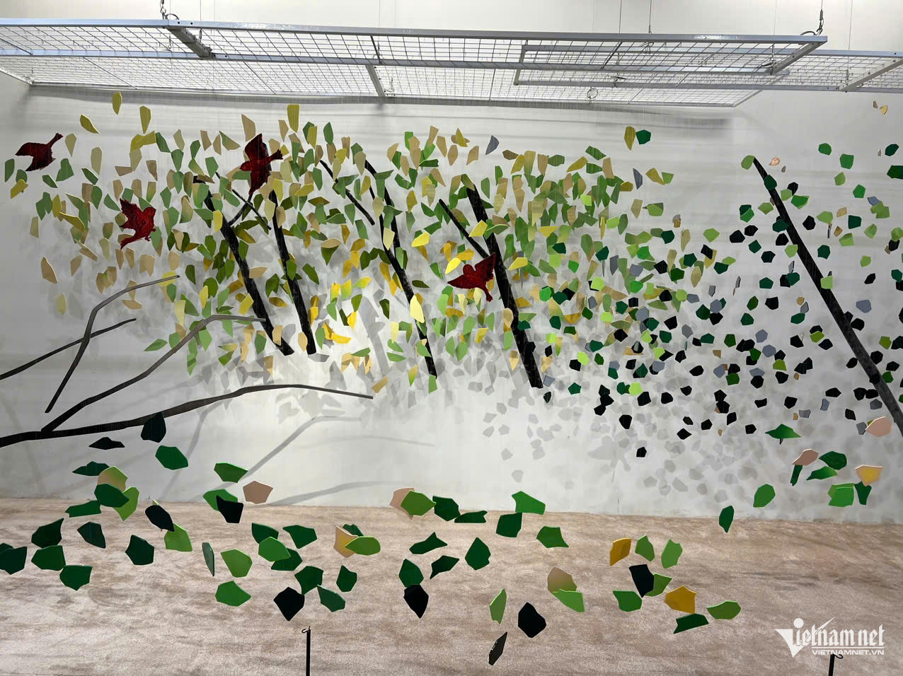 Tác phẩm sắp đặt bằng sơn mài, mosaic của nghệ sĩ Phạm Minh Hiếu tại triển lãm:
