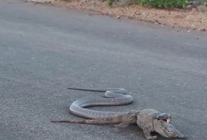 - Video: Cuộc truy đuổi nghẹt thở giữa rắn hổ mang và kỳ đà ngay trên đường. Nguồn: Latest Sightings.
