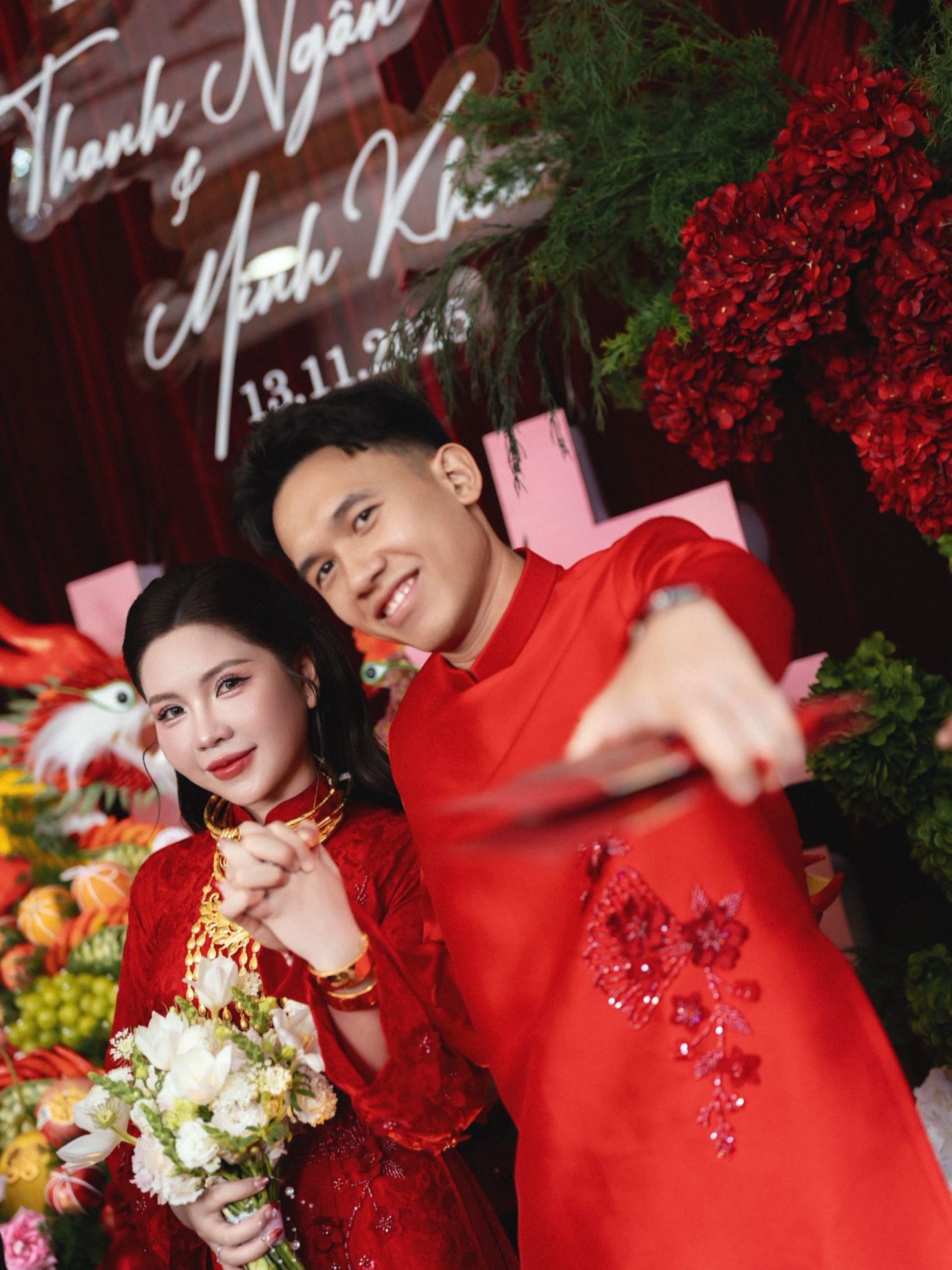 Ngày 13/11, lễ vu quy của tiền vệ tuyển Việt Nam Võ Hoàng Minh Khoa và bạn gái Huỳnh Thanh Ngân (cùng sinh năm 2001) diễn ra tại TP.HCM. Đôi trẻ nhận được nhiều món quà giá trị từ hai bên gia đình, như lời chúc phúc cho cuộc sống mới.