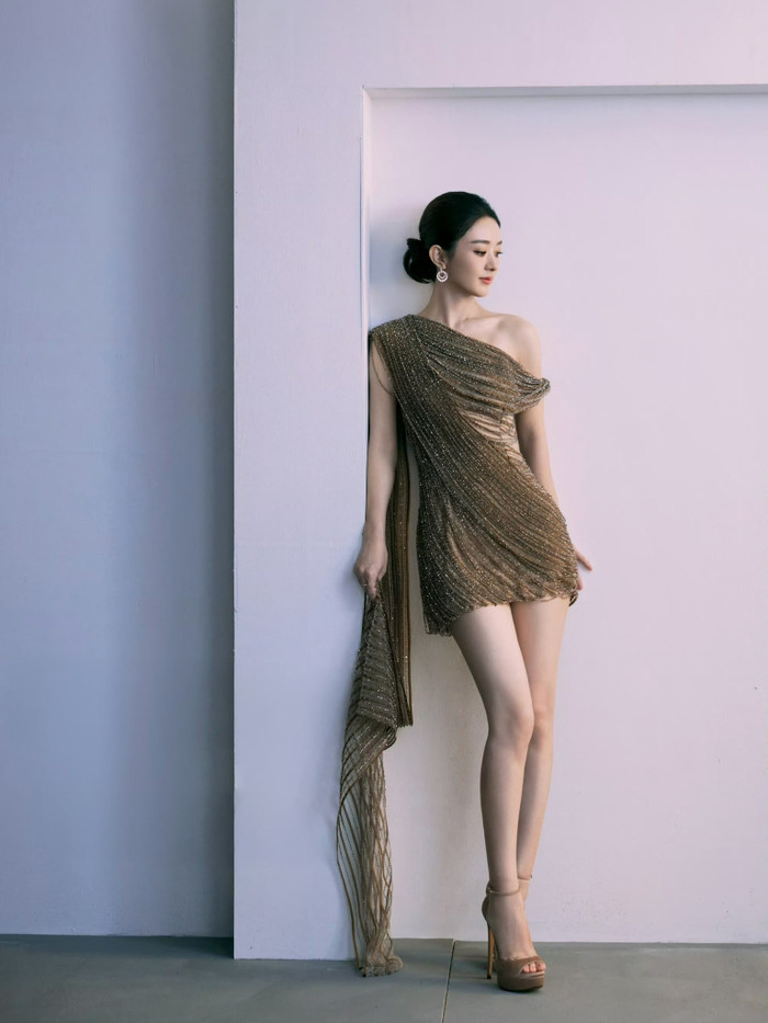 Vào ngày cô chính thức tái xuất, mọi ánh mắt đều đổ dồn về Triệu Lệ Dĩnh. Hình ảnh của cô vô cùng hoàn hảo: trang phục lộng lẫy, kiểu tóc và trang điểm được đầu tư kỹ lưỡng, không hề thua kém khi đi thảm đỏ.