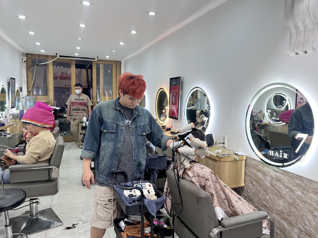 11 giờ trưa, khi nhiều người tranh thủ khép lại buổi sáng làm việc để ăn vội bữa cơm văn phòng, bên trong một tiệm làm tóc trên địa bàn quận Hoàng Mai (Hà Nội) lại bước vào "giờ cao điểm" khác.