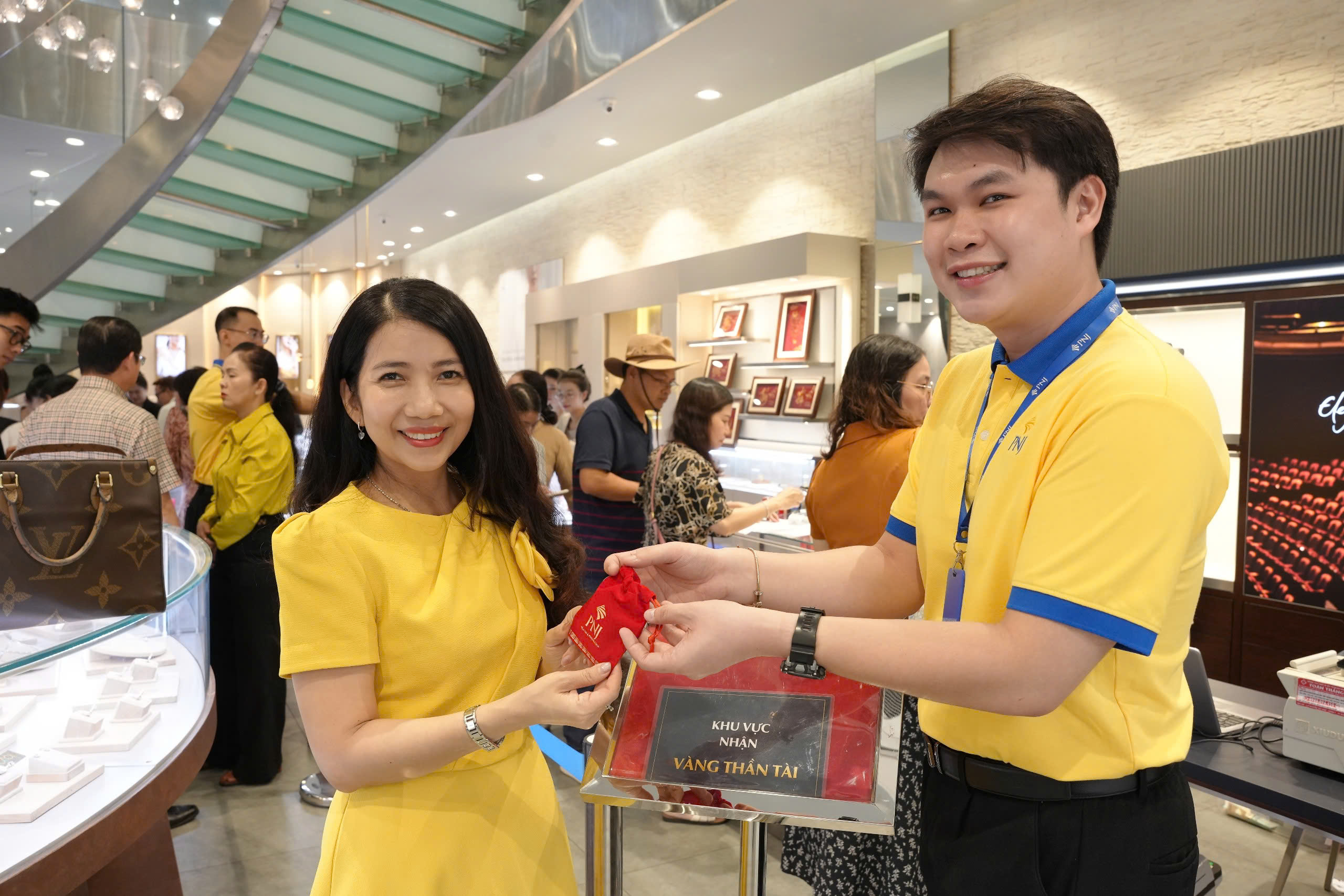 "Tôi muốn mua miếng vàng có chữ Lộc dịp Thần Tài, trong bộ sưu tập các chữ Lộc, An, Phúc, Phát, Tài… của PNJ và thấy bất ngờ khi có hàng, thanh toán nhanh, không phải chờ đợi quá lâu. Nhiều người mua nhẫn trơn PNJ, vàng Thần Tài hay các sản phẩm vàng mini cũng nói dễ mua hơn trước đó" – chị Hoàng Thịnh (ngụ phường Gia Định) khoe.