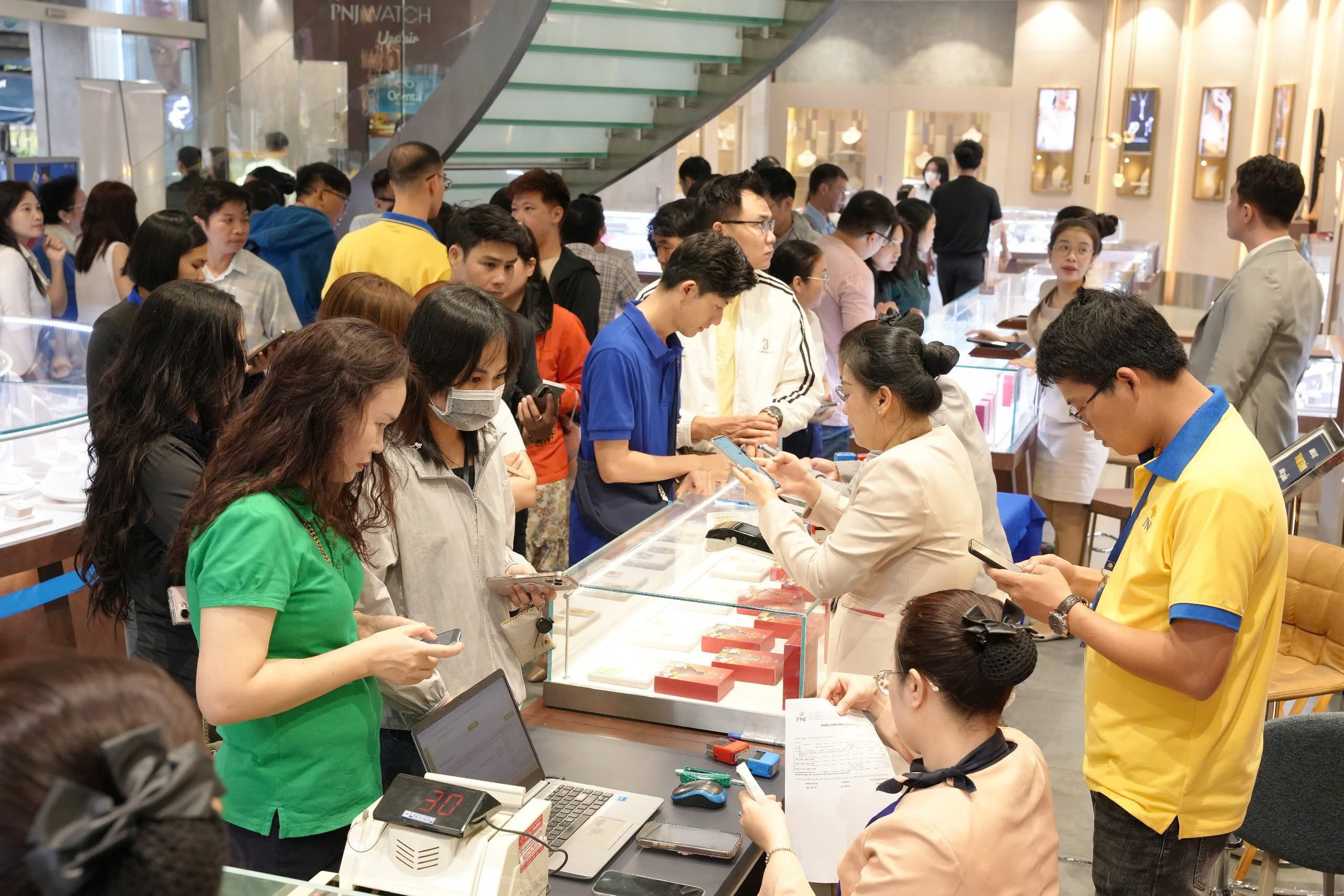 Khách nhộn nhịp đi mua vàng ngày Thần Tài ở PNJ
