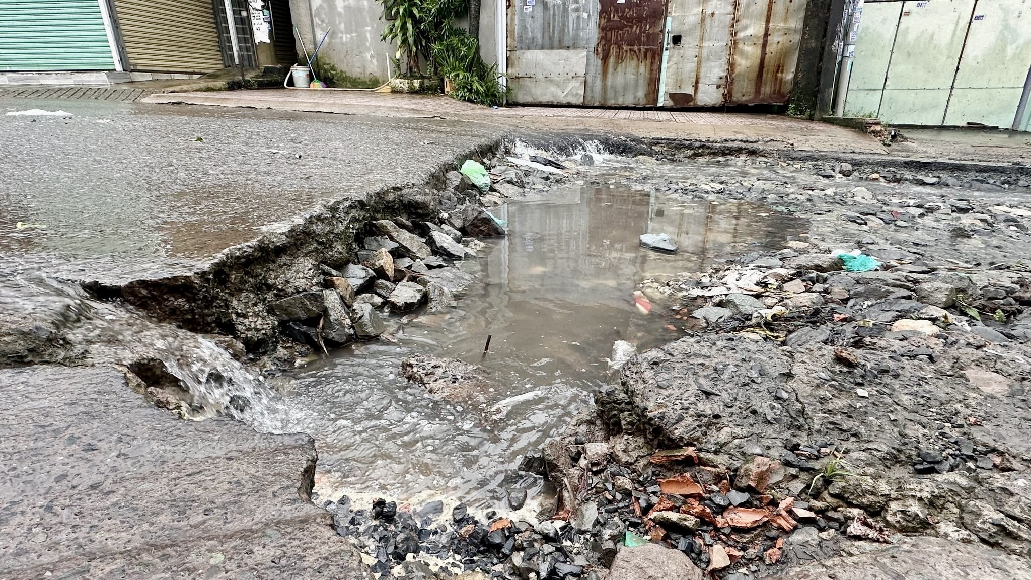 Do phải gánh tải trọng lớn kèm theo việc hứng chịu mưa liên tục do ảnh hưởng của bão dẫn đến mặt đường Lê Ngô Cát hiện xuất hiện hàng loạt ổ voi, ổ gà, bong tróc nham nhở. Mặt đường xuất hiện hõm sâu, đọng nước khiến người dân không khỏi thấp thỏm, lo lắng về an toàn của bản thân và con cái.