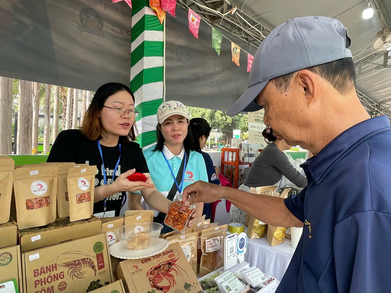 Ghi nhân tại đây cho thấy nhiều sản phẩm đặc trưng vùng miền như cà phê rang củi truyền thống, hóa mỹ phẩm từ quả bơ (Đắk Lắk); mứt rong sụn Khánh Hòa; lụa đũi Nam Cao (Thái Bình); nghệ mật ong (Hà Nội) cùng nhiều sản phẩm chế biến, thảo dược và thủ công mỹ nghệ được người dân khá quan tâm và trải nghiệm.