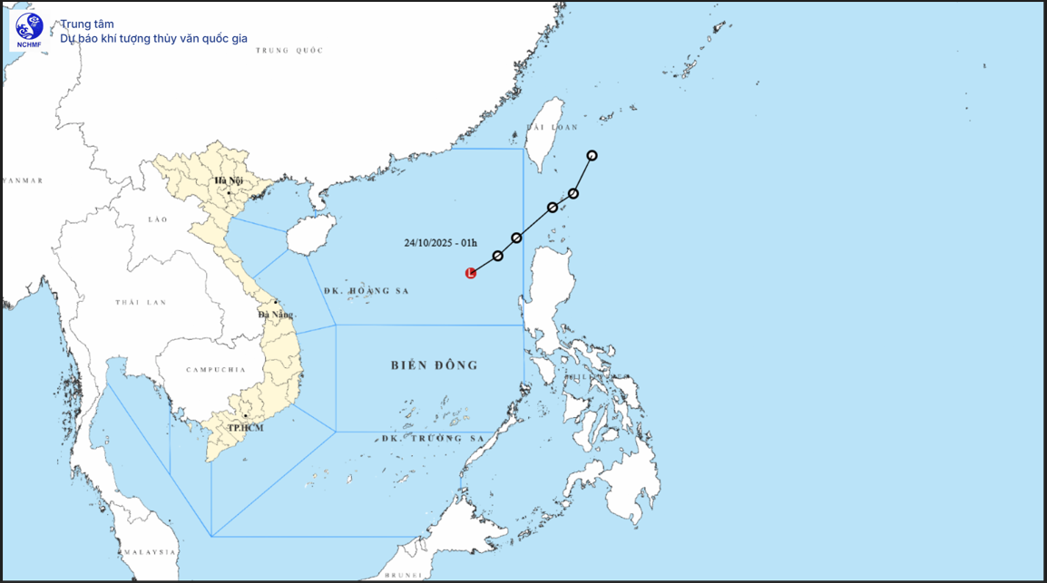 Theo Đài Khí tượng Thủy văn Nam bộ, đêm hôm qua (23/10), áp thấp nhiệt đới đã suy yếu thành một vùng áp thấp trên vùng biển phía Đông khu vực Bắc Biển Đông.