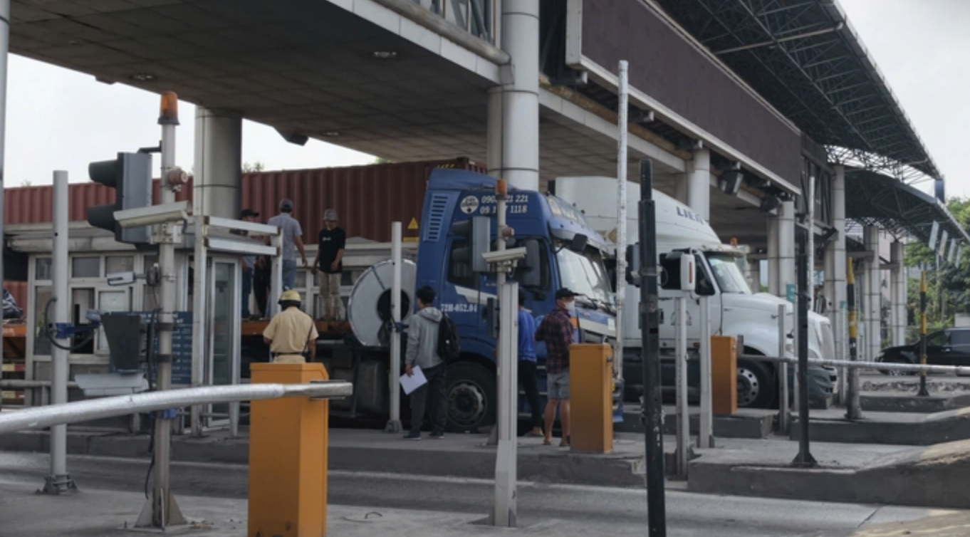 Xe đầu kéo vừa đến trạm thu phí thì xảy ra sự cố trên.