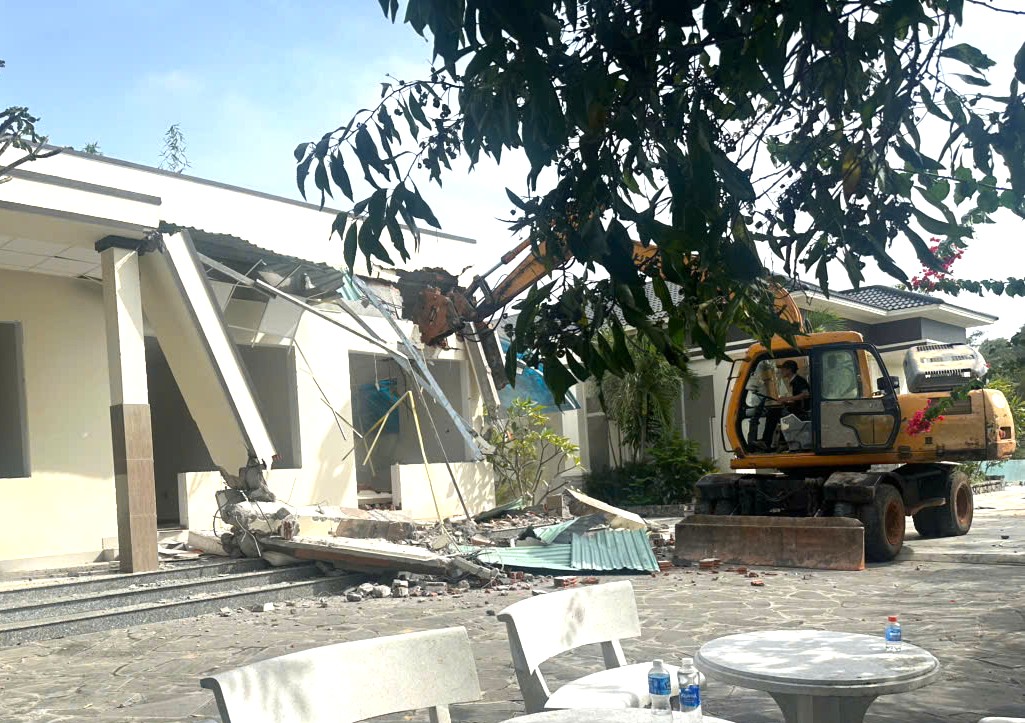 Trong ngày đầu cưỡng chế, lực lượng chức năng nhổ bỏ cây trồng, tháo dỡ nhiều công trình xây dựng không phép trên đất, gồm: Khu nhà hàng, nhà ở, hồ bơi, nhà kho... Sau khi giải tỏa các công trình không phép, phần diện tích đất bị lấn chiếm sẽ được bàn giao lại cho UBND phường Mũi Né quản lý.