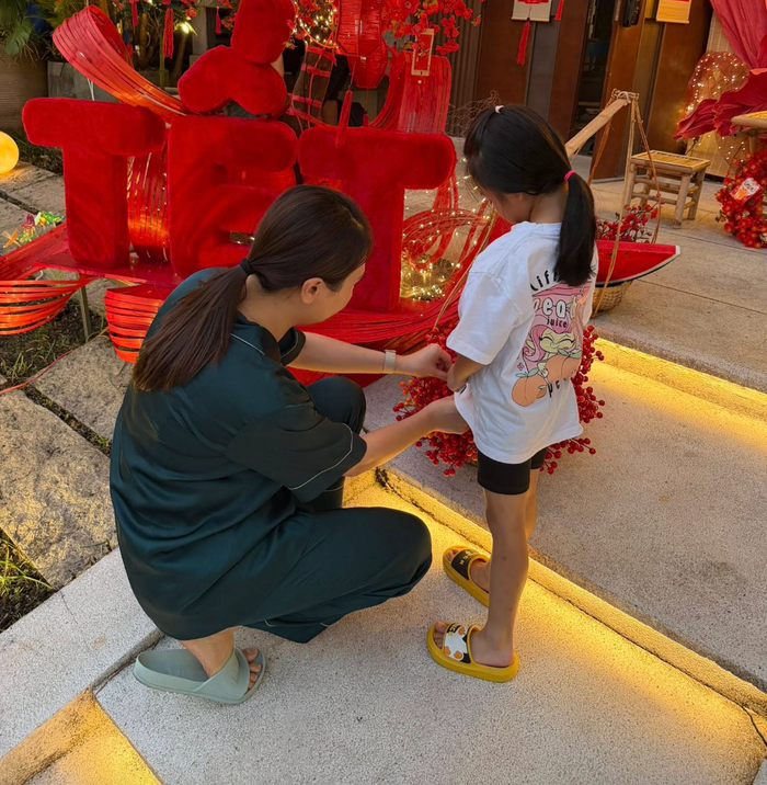 Cựu người mẫu xúc động viết lời nhắn gửi đến con gái: “Chẳng mấy chốc mà em bé của mẹ lớn nhanh quá, mới hồi nào bé tí teo ngồi coi mẹ trang trí Tết… thì tới năm nay em đã bắt đầu biết đóng góp ý kiến và hỏi mẹ sẽ trang trí nhà cửa ngày Tết như thế nào. Em lớn chầm chậm thôi em ơi”.