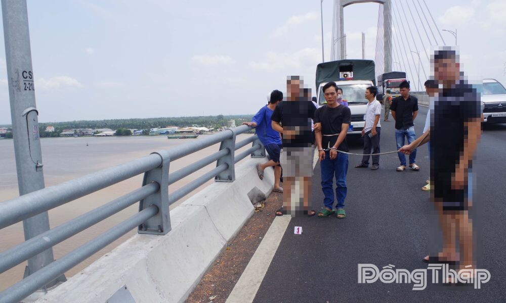 Theo thông tin ban đầu, vào khoảng 15 giờ 30 phút ngày 24-4, chị Nguyễn Thị Cẩm Hồng (sinh năm 1987, xã Long Định, tỉnh Đồng Tháp) đang điều khiển xe máy từ hướng ngã tư Đồng Tâm qua cầu Rạch Miễu 2. Khi đến đoạn giữa cầu, chị Hồng bất ngờ bị một đối tượng điều khiển xe máy Exciter màu đỏ, biển số 63B4-511.41 áp sát, lớn tiếng xin tiền.