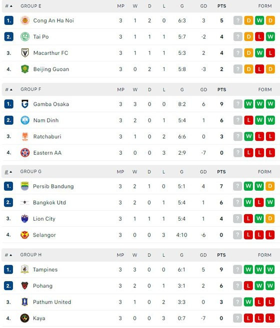 Ở lượt trận mới nhất, cả Ratchaburi, BG Pathum và Bangkok United đều thắng. Nhưng chiến thắng 5-1 của Ratchaburi trước Eastern FC mới là chiến thắng đầu tiên của CLB này từ đầu giải. Đá 3 trận chỉ có được 3 điểm, Ratchaburi đang tụt lại so với Nam Định và Gamba Osaka ở cuộc đua giành vé đi tiếp.