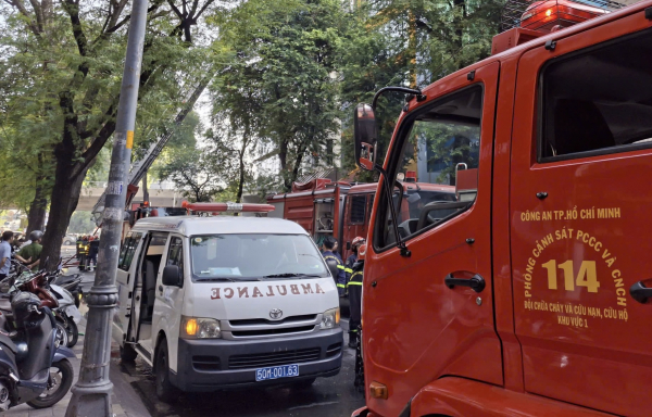 Bên trên tầng 5, một số người mắc kẹt kêu cứu. Do đám cháy trên cao nên không thể tiếp cận để dập lửa. Nhận tin báo cháy, Phòng Cảnh sát PCCC và CNCH, Công an TP Hồ Chí Minh đã điều động phương tiện, trong đó có xe thang và hàng chục cán bộ chiến sĩ xuống hiện trường triển khai chữa lửa.