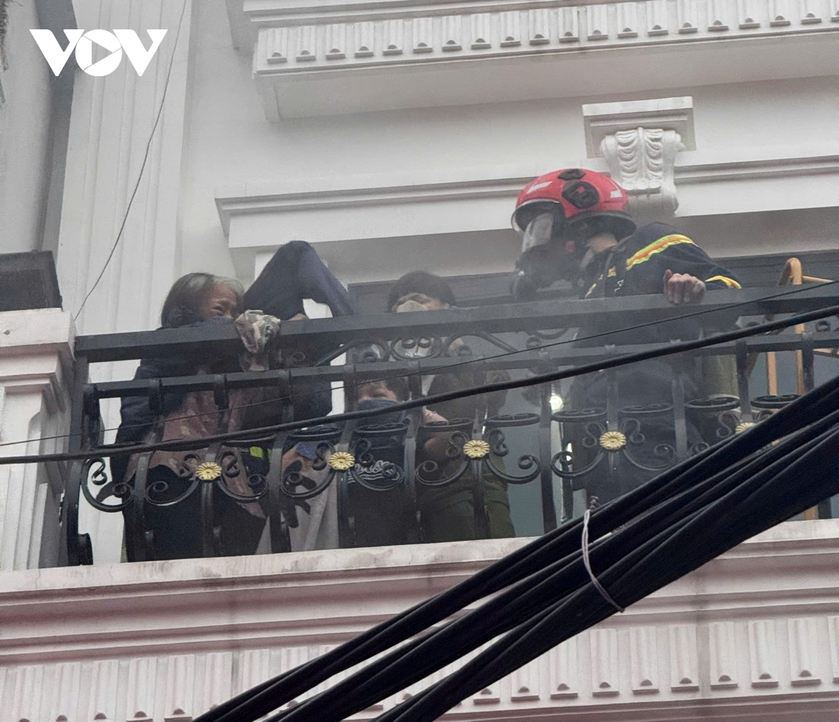 Hai người mắc kẹt trong đám cháy được đưa ra bằng cầu thang bộ và 1 người được đưa qua thang chữa cháy bên ngoài.