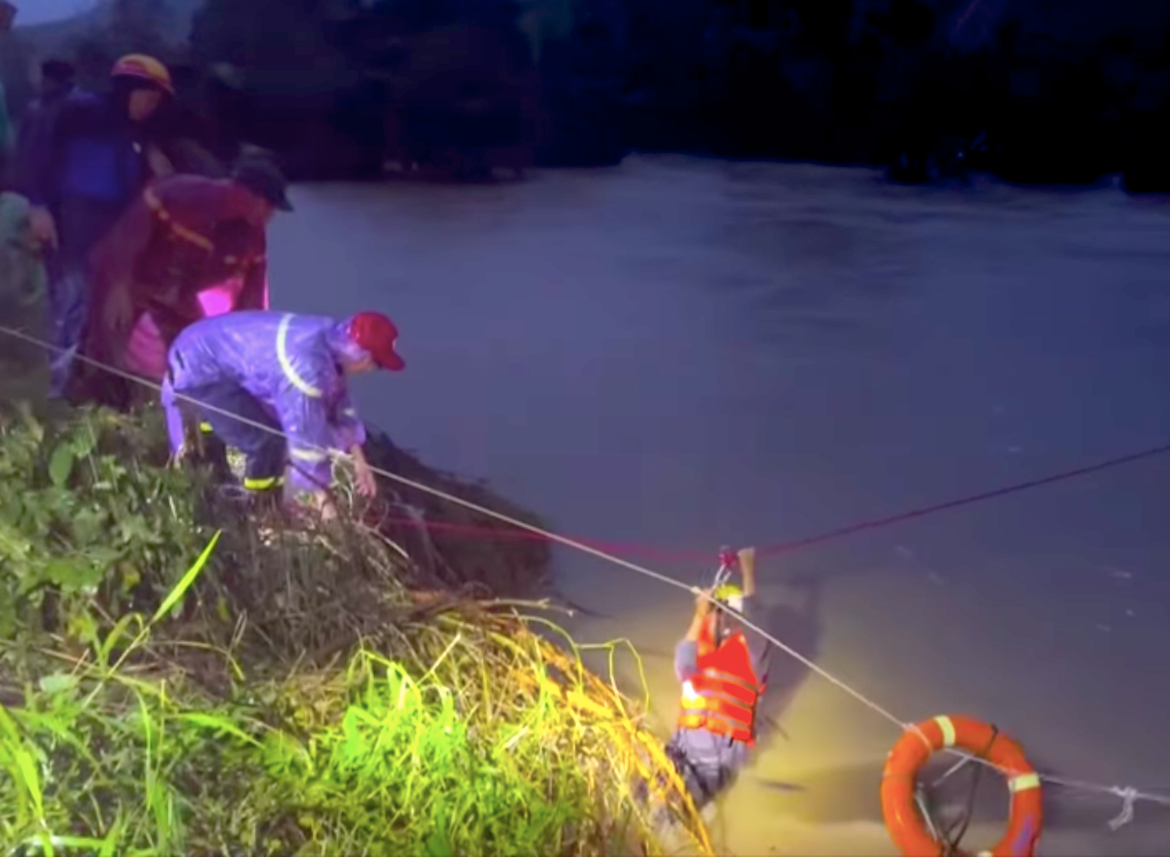 Do địa hình đồi núi dốc, hiểm trở, lòng sông rộng gây khó khăn cho công tác trinh sát, tiếp cận nạn nhân. Khi đã tính toán mọi phương án, lực lượng chọn cách vượt xuyên, căng dây nối hai bờ và đưa cán bộ có kỹ năng, nhiều kinh nghiệm nghiệp vụ đu dây vượt sông, rồi hướng dẫn, hỗ trợ người dân theo dây di chuyển về bờ bên này.