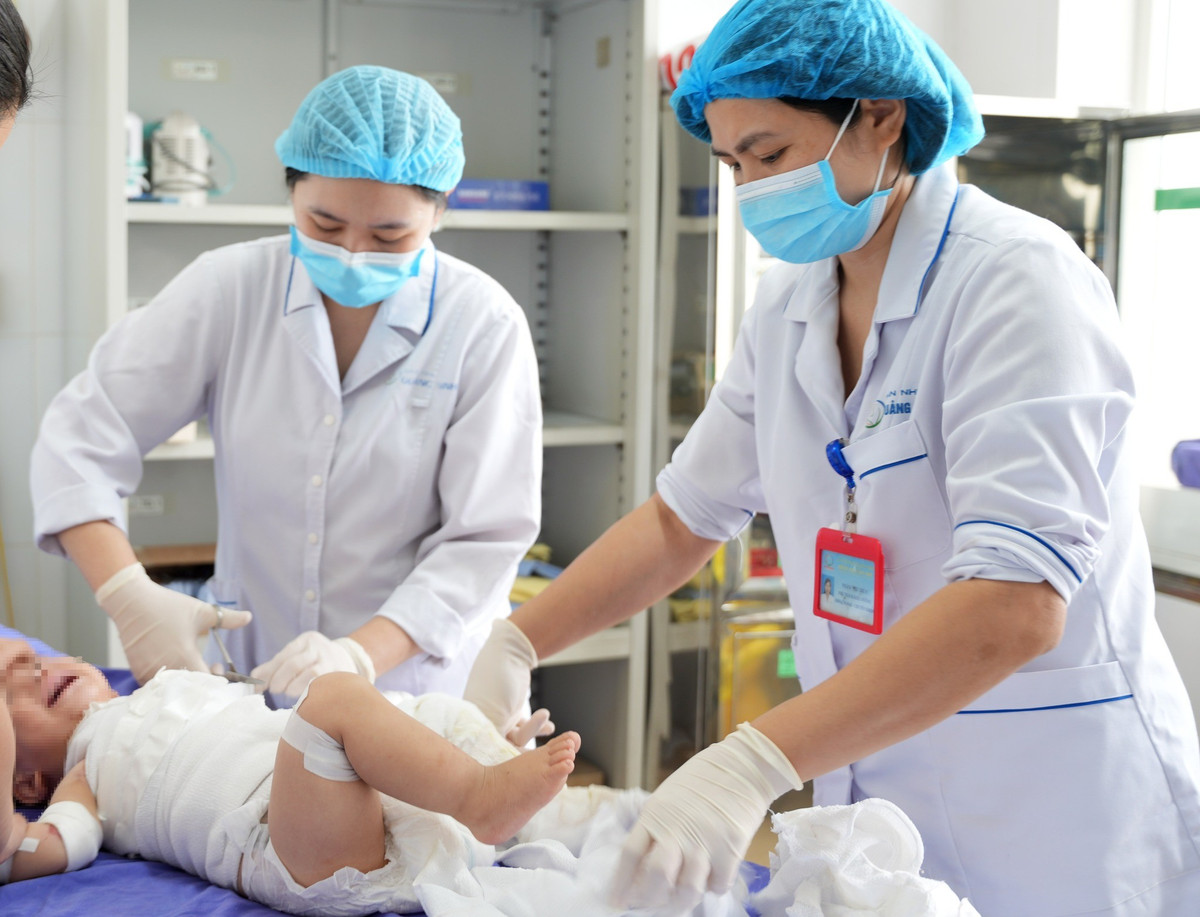 Các bác sĩ xử lý vết bỏng kịp thời cho bệnh nhi/ Ảnh BV