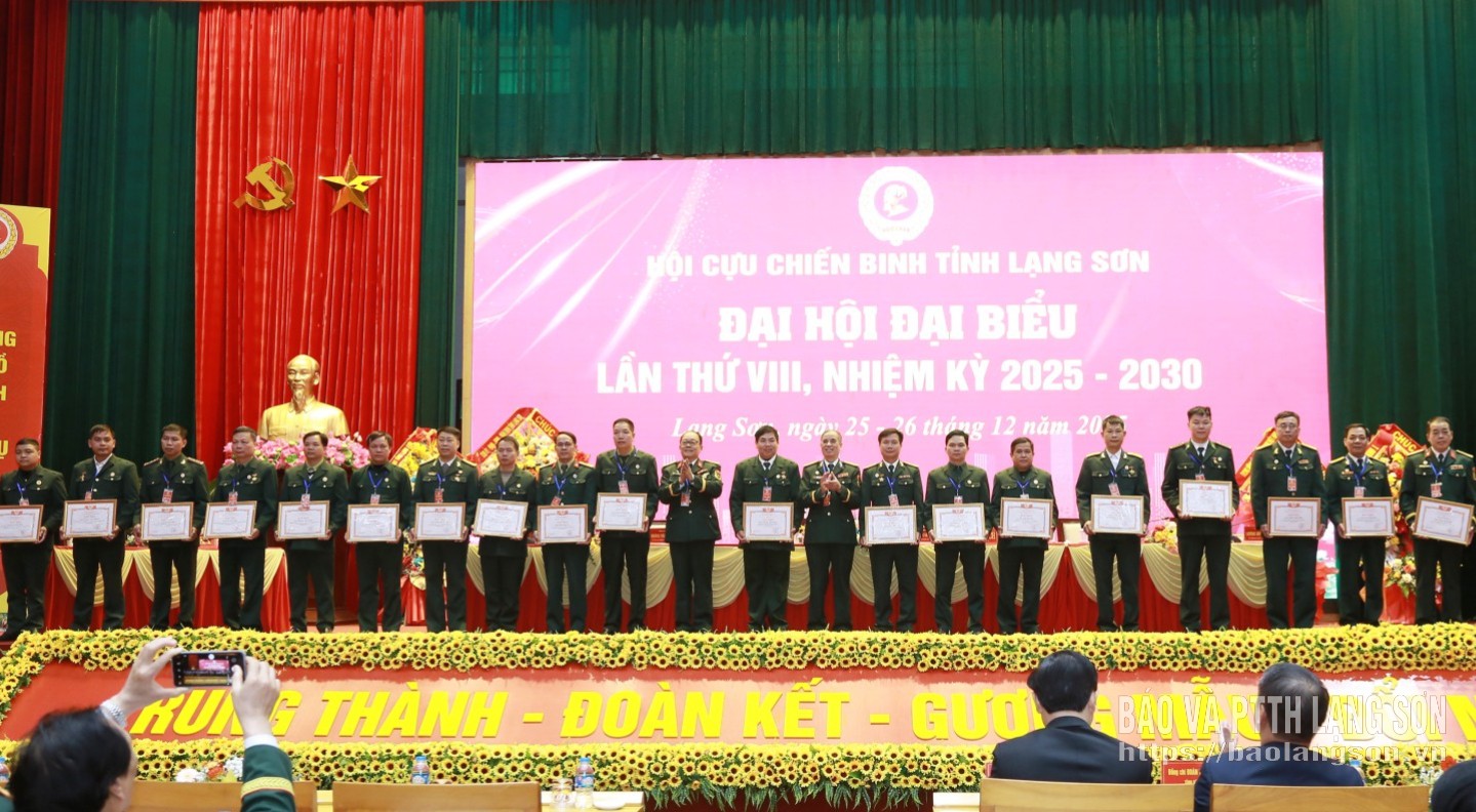 Nhân dịp này, có 5 tập thể, 9 cá nhân được tặng Bằng khen của Trung ương Hội CCB Việt Nam vì có thành tích xuất sắc trong phong trào thi đua "CCB gương mẫu" năm 2025; 8 tập thể, 9 cá nhân nhận được Bằng khen của Chủ tịch UBND tỉnh và 13 tập thể, 21 cá nhân nhận Bằng khen của Hội CCB tỉnh vì có thành tích xuất sắc trong công tác hội giai đoạn 2022 - 2025.