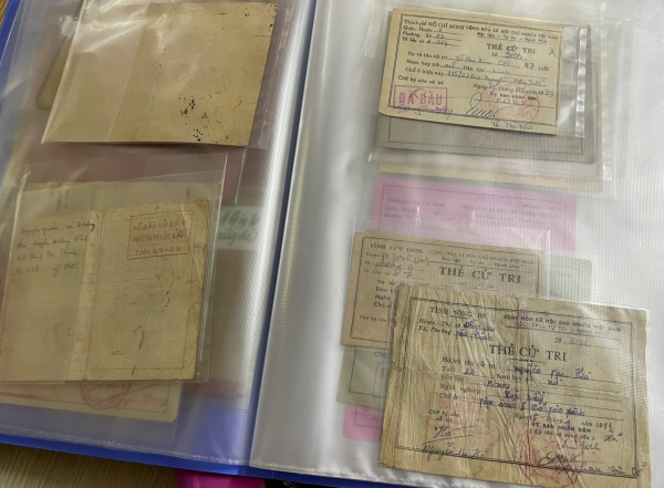 Những thẻ cử tri dù hư hại ít nhiều nhưng còn nguyên giá trị lịch sử.